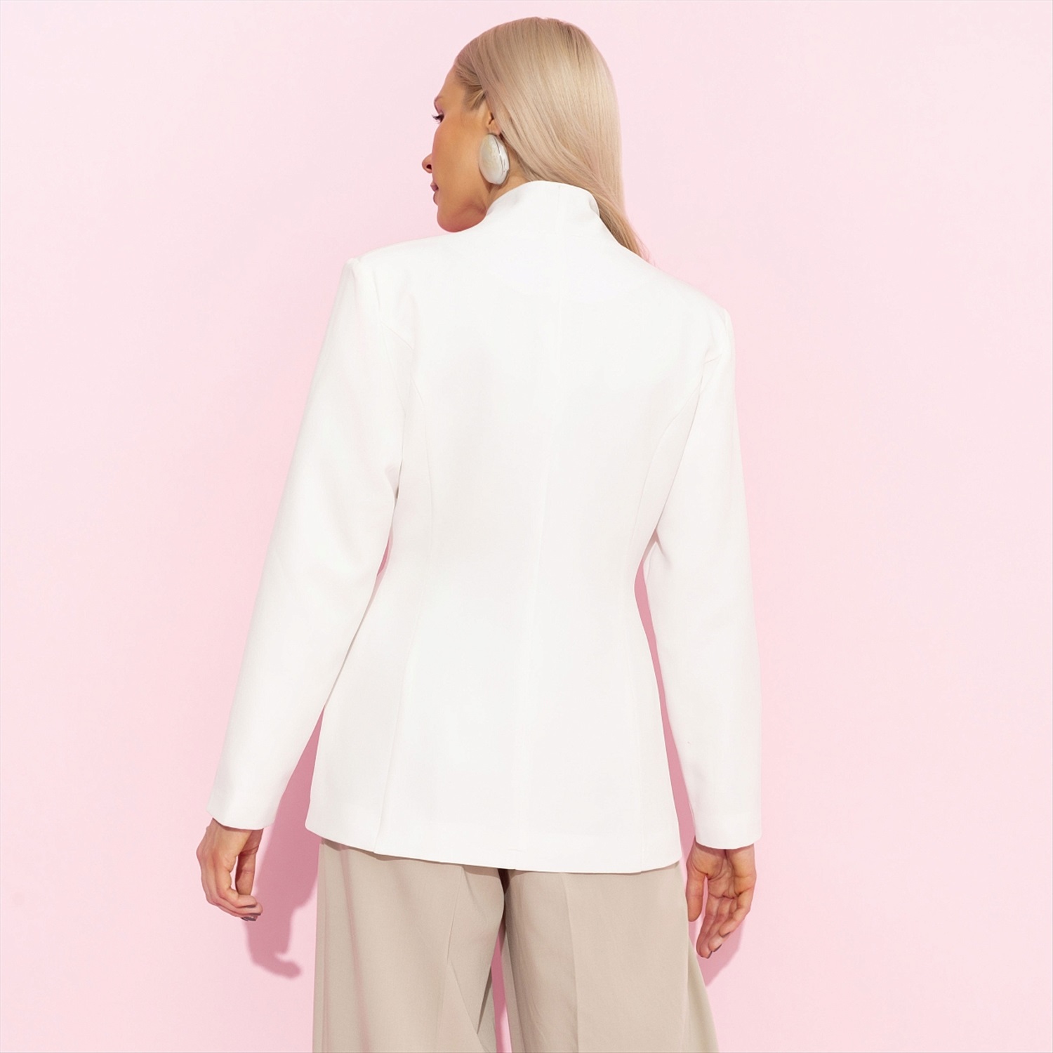 Ты в белом жакете CHARUTTI, и на всё у тебя есть собственное мнение. Жакет не пальто, но создает имидж принципиальной и прямолинейной барышни, а тебе только это и нужно. Из хорошей девочки ты превращаешься в умную и расчетливую. Жакет однобортный с акцентными ассиметричными лацканами. Приталенный силуэт. Акцентная пуговица. Изделие с подкладом на подплечниках. За счет перемещенной дальше от центра пуговицы, модель в белом цвете отличается от аналогичной модели в изумрудном и бежевом оттенках тем, что больше подчеркивает силуэт и выделяет талию.