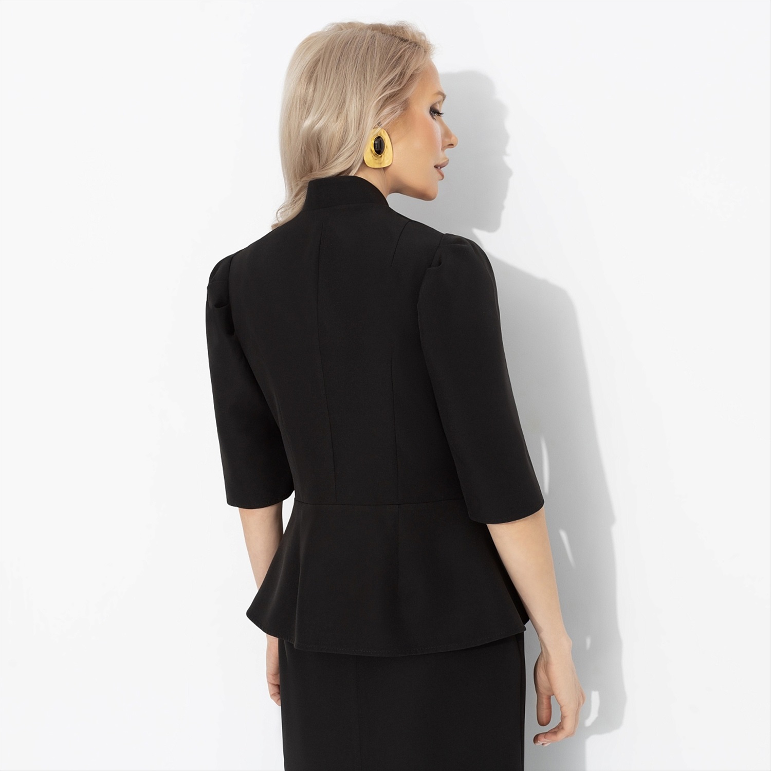 ТН ВЭД: 6204339000; Состав: Костюмная ткань «барби» (60% п/э, 37% вискоза, 3% спандекс); Плотность ткани: Средняя; Тип ткани: Текстиль; Вид застежки: Пуговица/-ы; Карманы: Нет; Основной цвет ткани: Черный; Отрезная талия: Есть; Подклад: Нет; Резинка по талии: Нет; Рисунок/раппорт: Нет, все изделия идентичны; Сезон: Круглогодичный; Силуэт: Приталенный