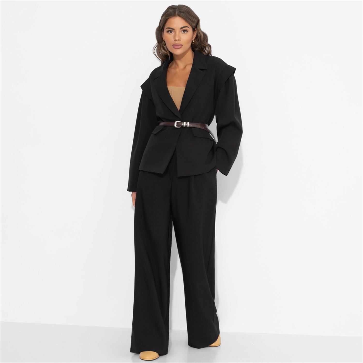 ТН ВЭД: 6204339000; Состав: «Барби», «ниагара» (60% п/э, 37% вискоза, 3% спандекс); Плотность ткани: Плотная; Тип ткани: Текстиль; Вид застежки: Пуговица/-ы; Дополнительный цвет ткани: Коричневый; Основной цвет ткани: Черный; Отрезная талия: Нет; Подклад: Есть; Резинка по талии: Нет; Рисунок/раппорт: Нет, все изделия идентичны; Сезон: Круглогодичный; Силуэт: Прямой; Стиль: Повседневный