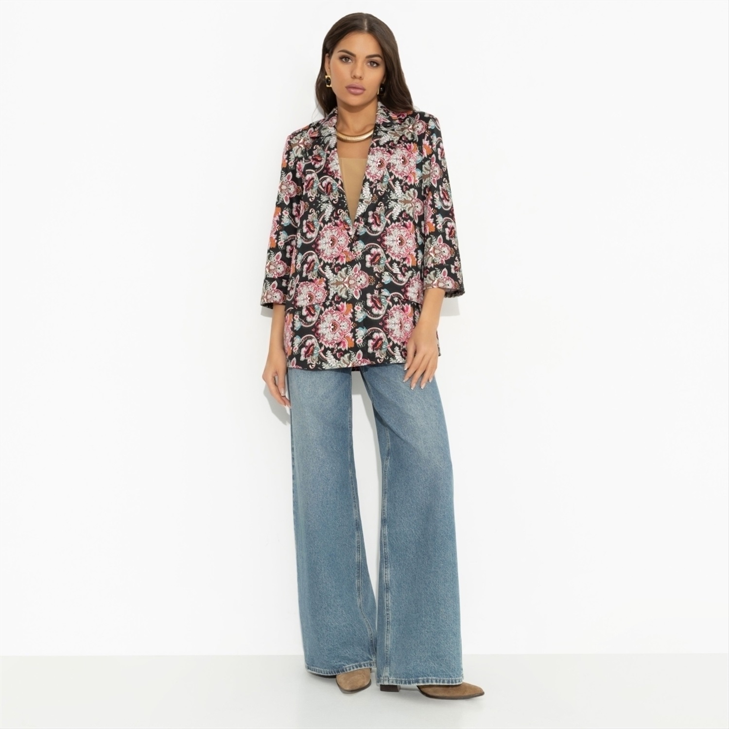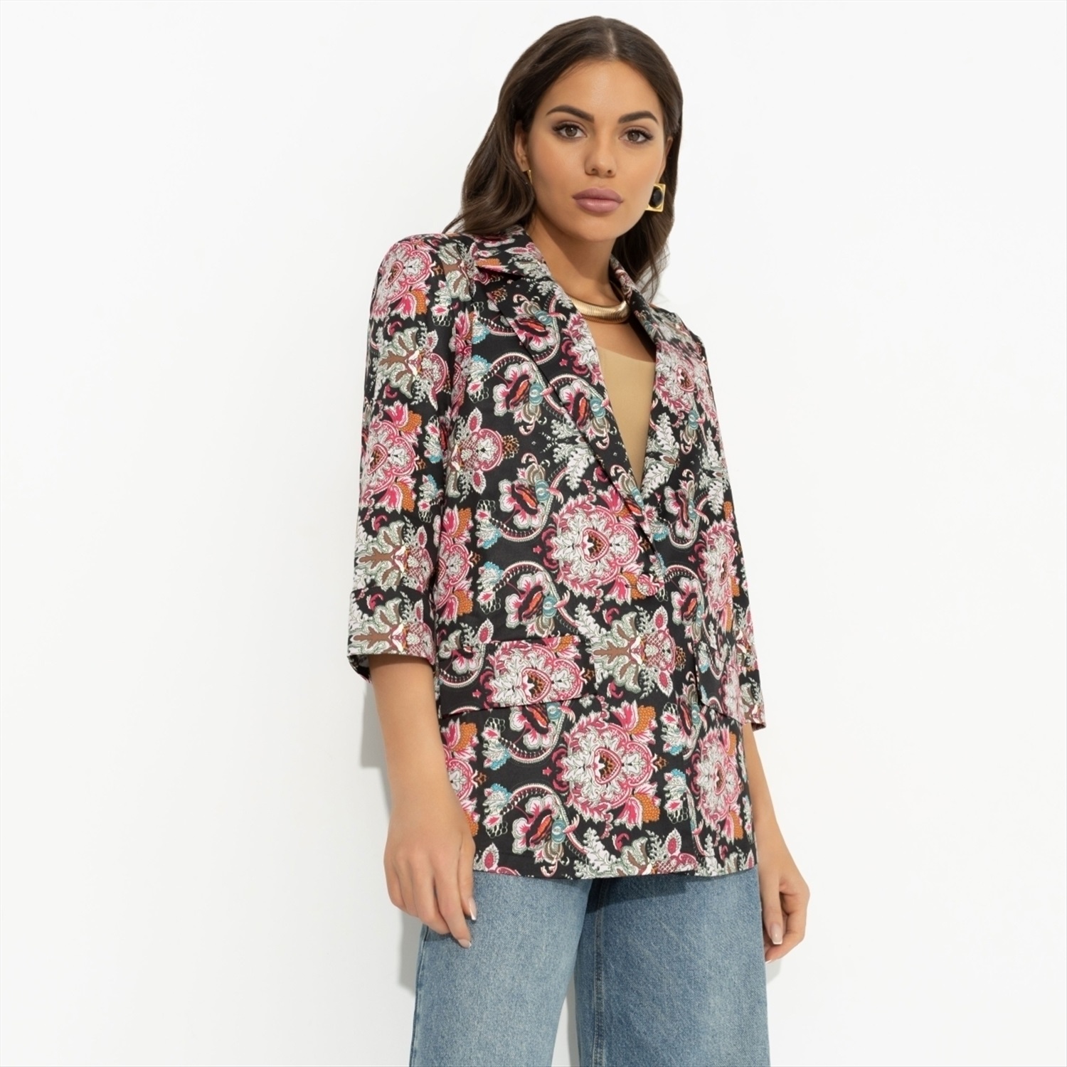 ТН ВЭД: 6204329000; Состав: «Коттон сатин набивной» (100% хлопок); Плотность ткани: Средняя; Тип ткани: Текстиль; Вид застежки: Пуговица/-ы; Дополнительный цвет ткани: Разноцветный; Карманы: Нет; Основной цвет ткани: Черный; Отрезная талия: Нет; Подклад: Нет; Резинка по талии: Нет; Рисунок/раппорт: Каждое изделие уникально из-за расположения рисунка на ткани; Сезон: Лето; Силуэт: Прямой; Стиль: Деловой Параметры модели на фото: Грудь: 88 см Талия: 61 см Бёдра: 89 см Рост: 170 см. Размер на модели: 44 Длина изделия: * 44 размер - 77 см * 46 размер - 77 см * 48 размер - 78 см * 50 размер - 78 см * 52 размер - 79 см * 54 размер - 79 см Длина рукава: * 44 размер - 55 см * 46 размер - 55 см * 48 размер - 56 см * 50 размер - 56 см * 52 размер - 57 см * 54 размер - 57 см Обхват груди: * 44 размер - 100 см * 46 размер - 104 см * 48 размер - 108 см * 50 размер - 112 см * 52 размер - 116 см * 54 размер - 120 см Обхват талии: Обхват бёдер: Вес товара, кг: * 44 размер - 0.32 * 46 размер - 0.32 Габариты товара (ДхШхВ), см.: * 44 размер - 32 х 32 х 2 * 46 размер - 32 х 32 х 2 Время обратиться к прекрасному. Стилизуем предмет искусства в виде жакета от CHARUTTI с преметами повседневности. Выбираем нетривиальные сочетания с джинсами или джинсовыми юбками. Надеваем поверх делового платья или комбинации. Жакет однобортный прямого кроя с лацканами. Рукава укорочены. Имитация карманов. Изделие на подплечниках.