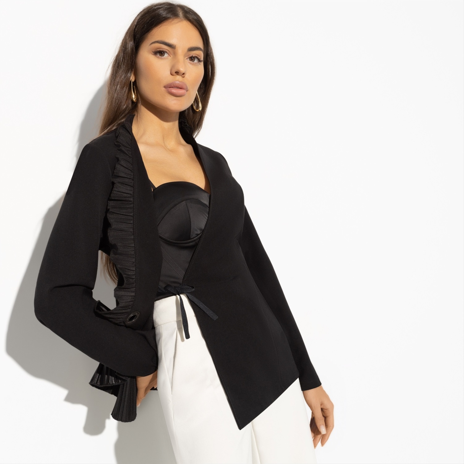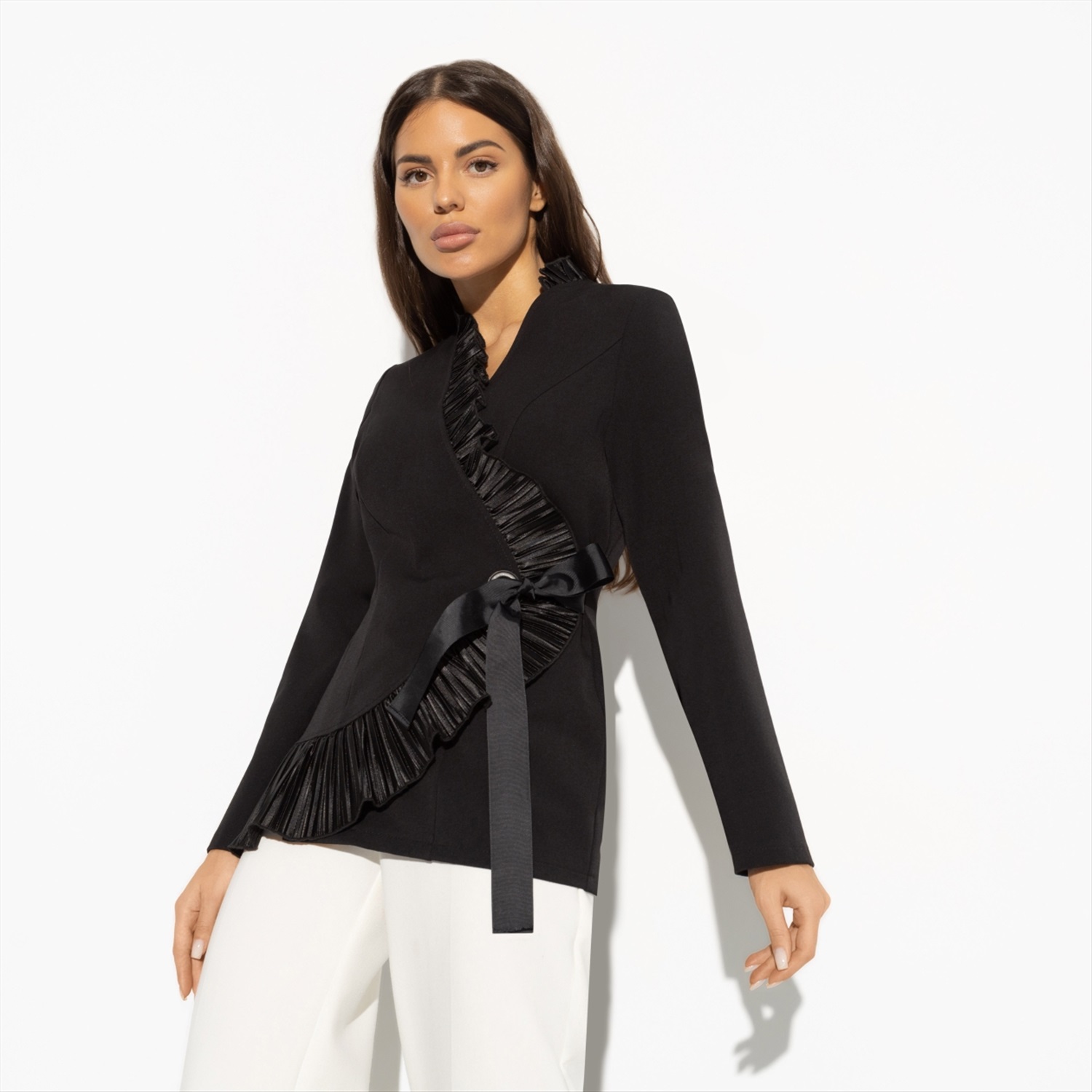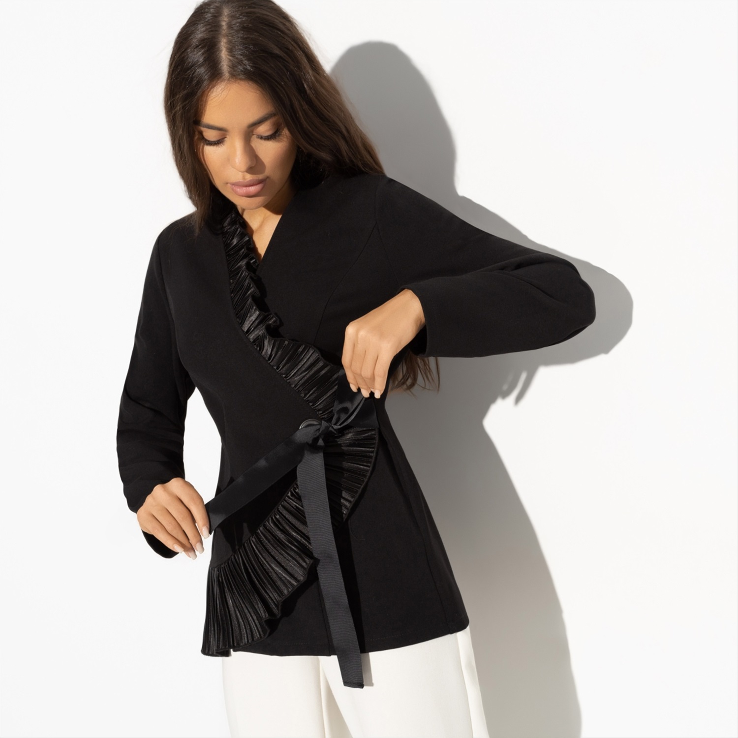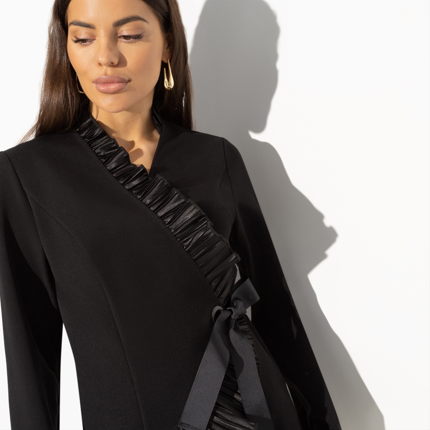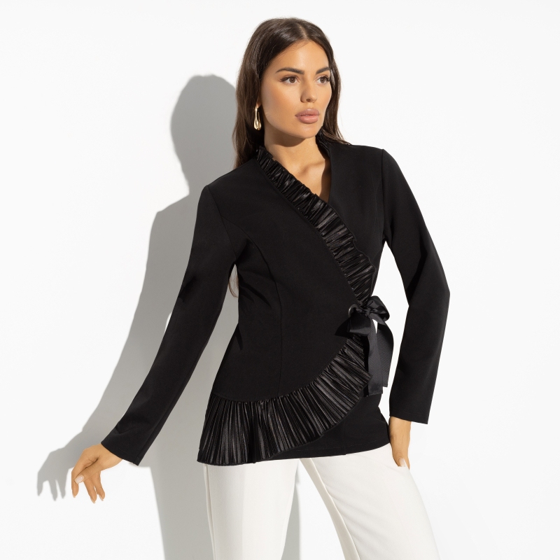 Жакет с воланом на запах «Прекрасно воспитана» — это не просто элемент гардероба, это ваше заявление о вкусе и стиле. Изготовленный из качественной костюмной ткани «тиар» и атласного плиссе, этот женский жакет не оставит равнодушным никого. Приталенный силуэт подчеркивает элегантность, а акцентная линия запаха с атласной лентой добавляет изюминку в ваш образ. Представьте себе, как вы блистаете на торжественном мероприятии — в центре внимания, на всех фотографиях, и все взгляды устремлены на вас. Жакет CHARUTTI делает вас звездой вечера, и ваш прекрасный вкус становится предметом обсуждения. Покупка оптом позволит вам обеспечить себя и своих близких этой великолепной вещью, которая станет неотъемлемой частью вашего гардероба.