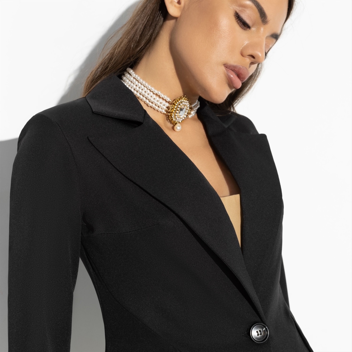 Состав: «Барби» (60% полиэстер, 37% вискоза, 3% спандекс) Плотность ткани: Средняя Тип ткани: Текстиль Вид застежки: Пуговица/-ы Карманы: В рельефах Основной цвет ткани: Черный Отрезная талия: Нет Подклад: Нет Резинка по талии: Нет Рисунок/раппорт: Нет, все изделия идентичны Сезон: Круглогодичный Телепорт к вершинам карьерного успеха выглядит так. Жакет в классическом черном цвете трендового приталенного силуэта – для самого быстрого перемещения на топовые должности. Откройте новые горизонты успешных продаж с жакетом «Шоу-показ (найт)». Этот элегантный приталенный жакет в классическом черном цвете станет настоящим хитом среди ваших клиентов. В его состав входят высококачественные материалы: 60% полиэстер, 37% вискоза и 3% спандекс, что обеспечивает прочность и комфорт при носке. Жакет идеально подходит для деловых встреч, корпоративных мероприятий и торжественных случаев, предлагая идеальное сочетание стиля и удобства. Выберите жакет «Шоу-показ (найт)» для вашего ассортимента, чтобы предложить покупателям уникальную возможность подчеркнуть свой стиль и уверенность. Этот товар, продаваемый оптом, позволяет вам удовлетворить потребности широкого круга клиентов, которые стремятся выглядеть безупречно в любой ситуации. Стильный силуэт и трендовый дизайн делают этот жакет отличным выбором для тех, кто ценит модные и качественные вещи. Покупая жакет «Шоу-показ (найт)» оптом, вы обеспечиваете себе стабильный спрос и высокую прибыль. Клиенты будут в восторге от возможности приобрести такой универсальный и модный предмет гардероба. Убедитесь, что в вашем магазине есть этот жакет, чтобы удовлетворить запросы самых взыскательных покупателей и укрепить свою репутацию как поставщика качественной и стильной одежды. Комментарии к товару