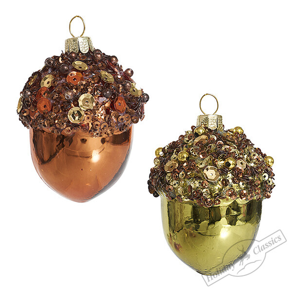 Желудь с пайетками асс. из 2-х (стекло) 5х5х7 см