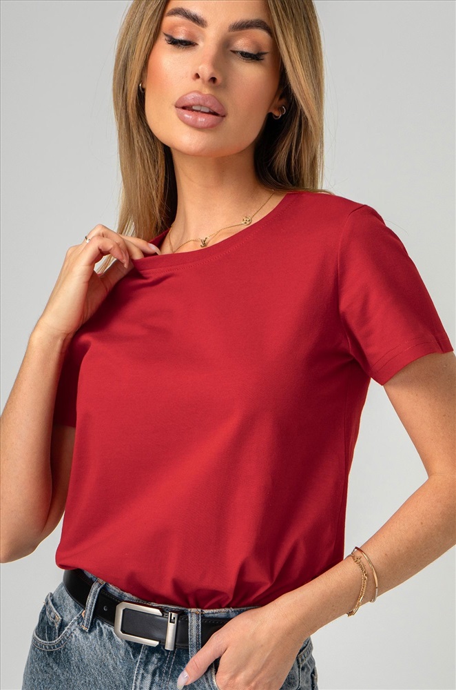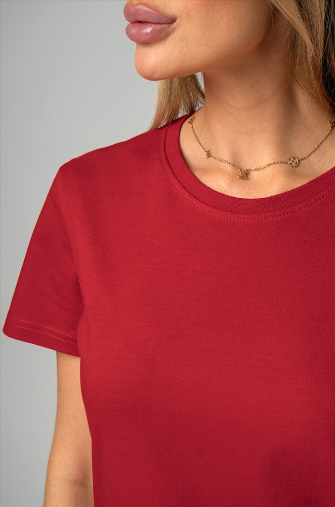 Базовая женская футболка станет незаменимой частью гардероба каждой женщины. Классическая футболка выполнена из 100% хлопка. Однотонная яркая красная футболка — идеальный выбор для тех, кто ценит стиль, комфорт и простоту в каждой детали.
