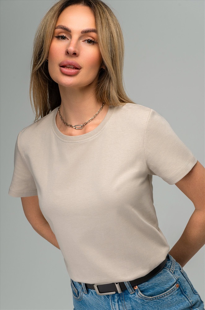 Минимализм, который говорит сам за себя! Женская футболка станет незаменимой частью гардероба каждой женщины. Классическая футболка выполнена из 100% хлопка. Однотонная футболка бежевого цвета — идеальный выбор для тех, кто ценит стиль, комфорт и простоту в каждой детали.
