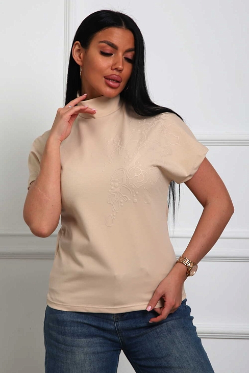 Материал: Кулирка с лайкрой; Состав: 95% хлопок, 5% эластан; Застежка: Без застежки; Длина рукава: Короткий рукав; Размерный ряд: 44-58; Цвет: Бежевый; Тип рисунка: Однотонный