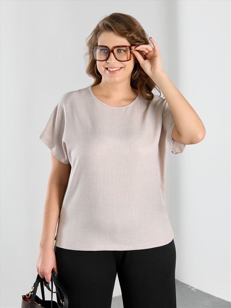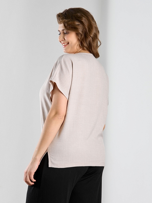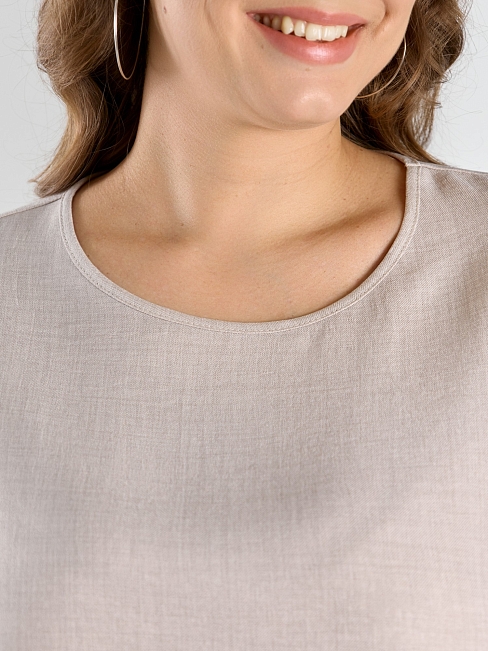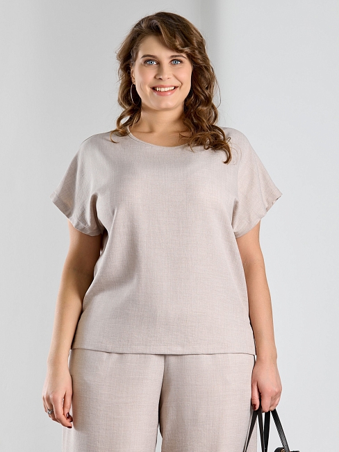 Материал: Плательная ткань; Состав: 100% полиэстер; Длина рукава: Короткий рукав; Размерный ряд: 48-58; Цвет: Бежевый; Тип рисунка: Однотонный