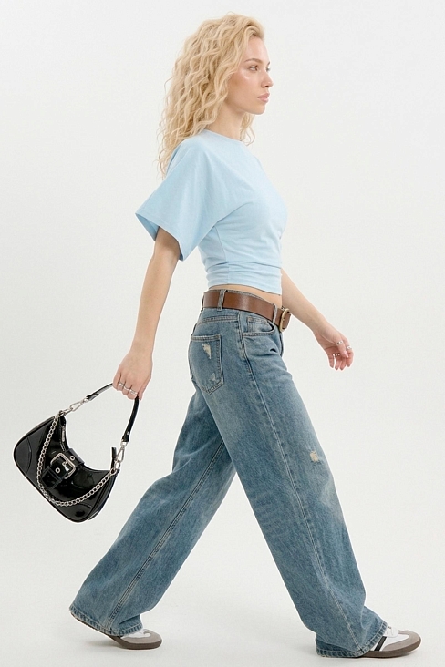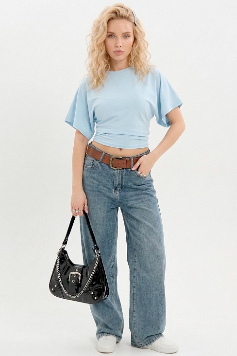 Ультрамодная футболка из мягкой фуллайкры с приталенным силуэтом. Цельнокроеный рукав и зауженная талия создают эффект легкой драпировки спереди, который визуально стройнит и подчеркивает фигуру. Идеальная посадка и комфорт на каждый день.