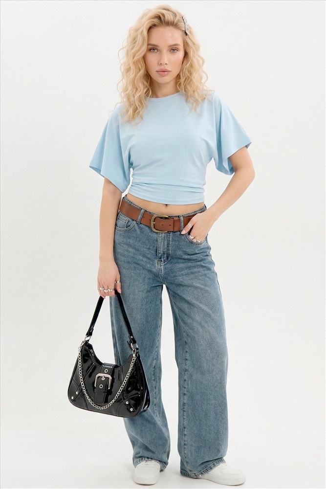 Материал: Фулайкра; Состав: 95% хлопок, 5% эластан; Застежка: Без застежки; Длина рукава: Короткий рукав; Размерный ряд: 38-50; Цвет: Голубой; Тип рисунка: Однотонный