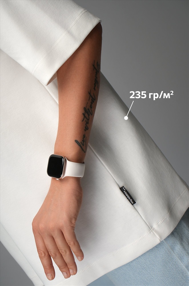Производитель: Happyfox; Бренд: Happyfox; Страна: Узбекистан; Состав: 100% хлопок; Материал: Интерлок; Плотность ткани: 235 г/м2; Цвет: молочный