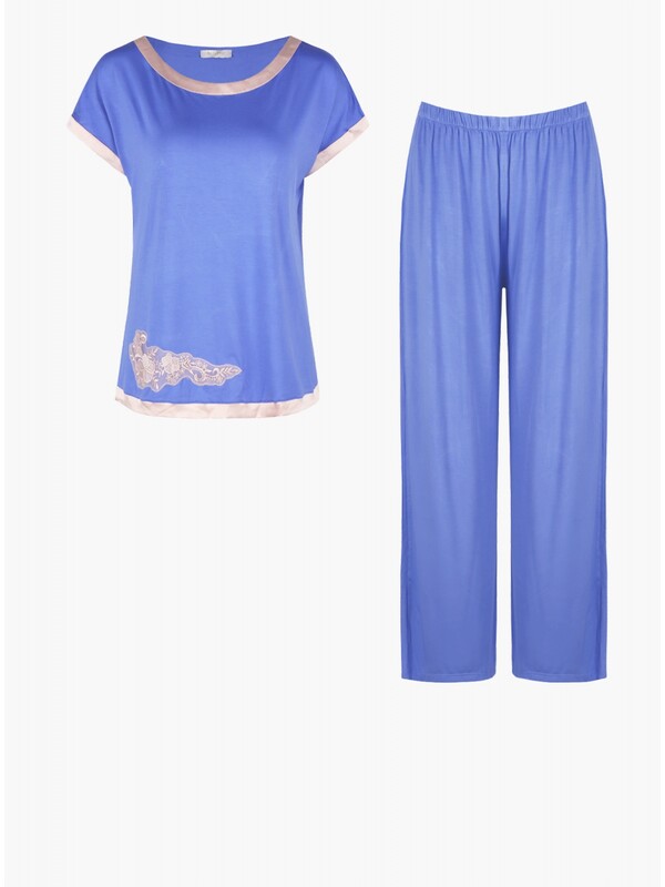 Женская пижама с короткими рукавами выполнена из бамбукового трикотажа, что является ее главным преимуществом. Ткань обеспечивает нежное прикосновение к коже и максимальную свободу движений. Кружевная вышивка украшает футболку свободного кроя и придает образу нежность и элегантность. Мягкая резинка на свободных брюках не сковывает движение и обеспечивает комфорт на протяжение всей ночи.