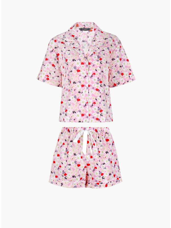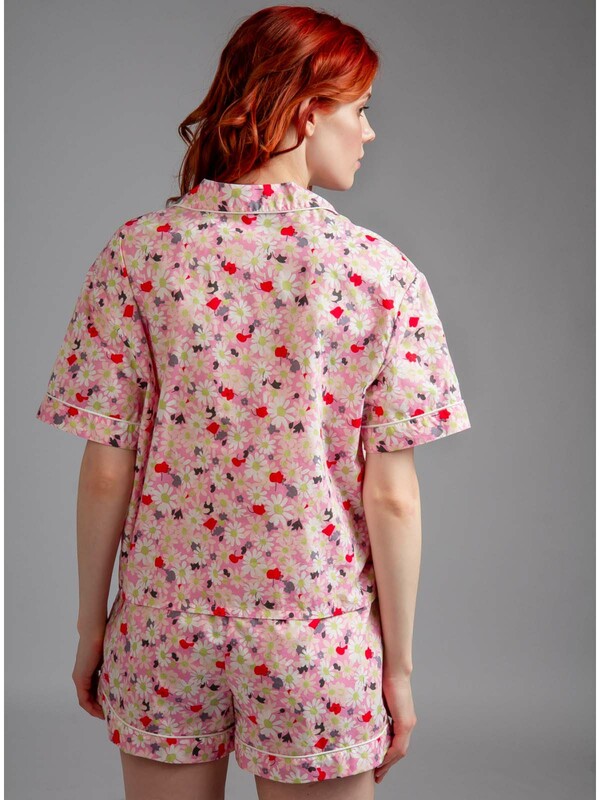 Рубашка из хлопка, розового цвета, с цветочным принтом, с короткими рукавами, с воротником-отворотом, с обрамлением, на пуговичках, прямая, свободного кроя. Шорты из хлопка, розового цвета, с цветочным принтом, с обрамлением, прямые, свободного кроя, на мягкой резинке, с регулирующей лентой. 100% Хлопок Комментарии к товару