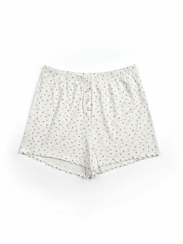 Теплая пижама с шортами — спасение в холодное время года. Цветочный принт и волнистый край дарят нежный, женственный характер пижаме. Выполнена из трикотажа пуантель: мягкого полотна с характерным ажурным плетением. Такая ткань согревает и при этом пропускает воздух — идеальная пижама на зиму или раннюю весну. Мягкая резинка не оставляет следов на коже, а материал подходит даже для чувствительной кожи.