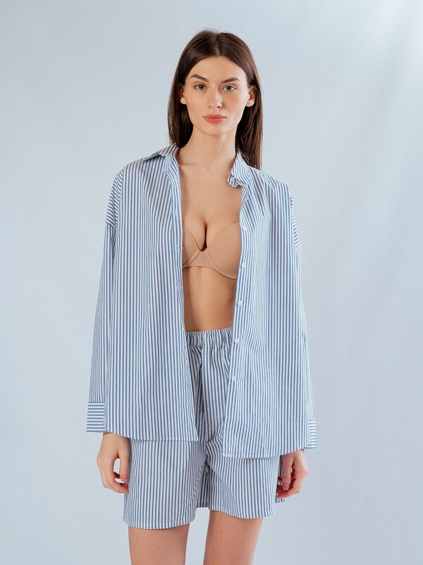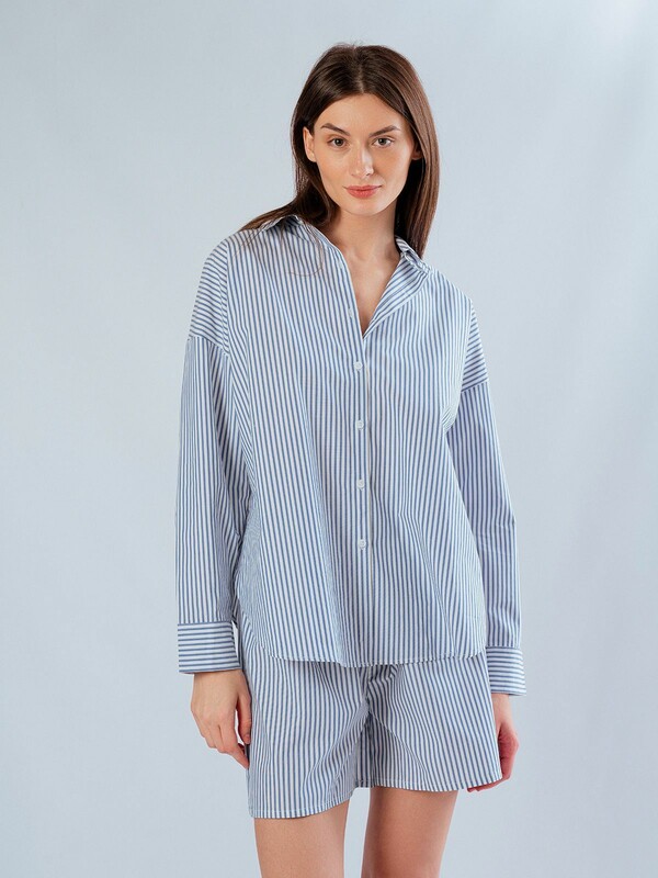 Стильная домашняя одежда от торговой марки Индефини в виде рубашка с шортами, самая популярная, можно носить в любое время года. Такой вид одежды подарит комфорт и уют дома.