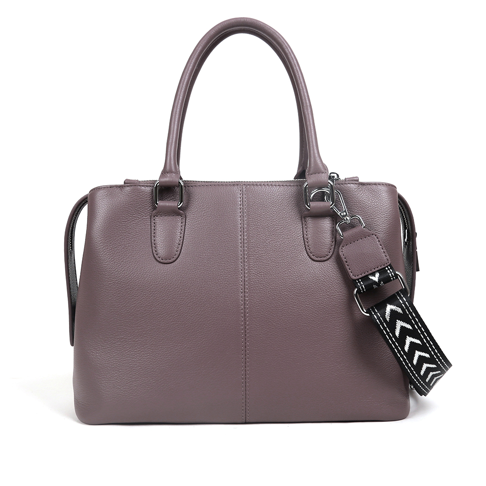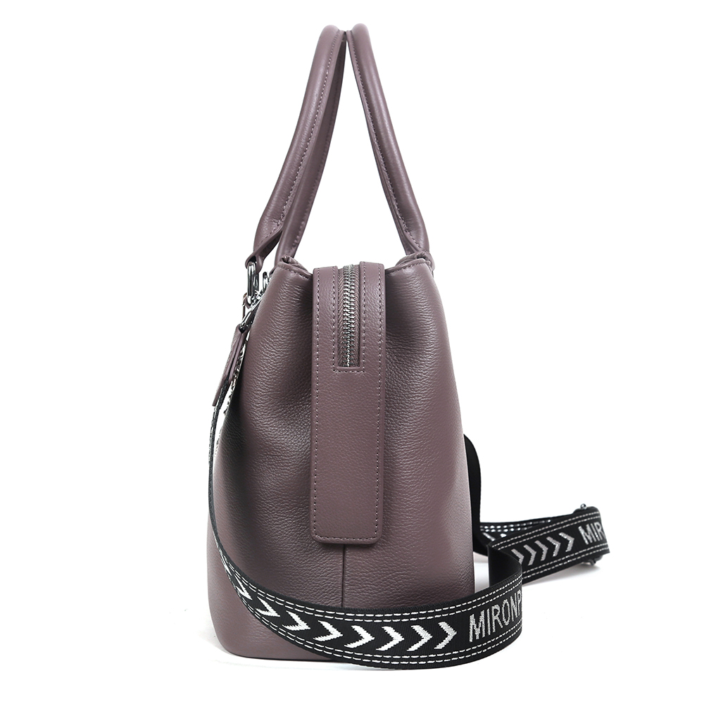 Компактная сумка-тоут MIRONPAN в светло-сиреневом оттенке выполнена из натуральной зернистой кожи. Основное отделение закрывается на молнию. Внутри 2