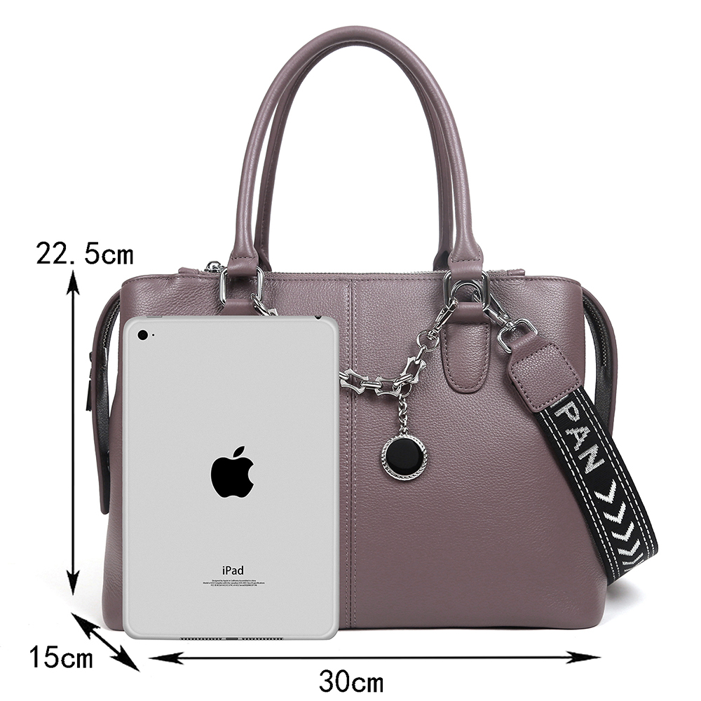 Габариты: 30 х 22,5 х 15 ( длина х высота х ширина ); Материал: Кожа; Размер: Средний; Цвет: Светло- Сиреневый; Цвет фурнитуры: Серебряный