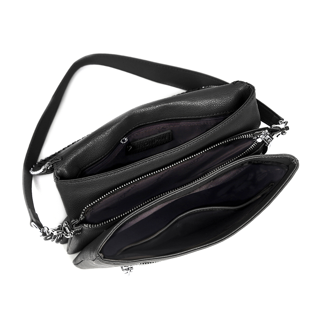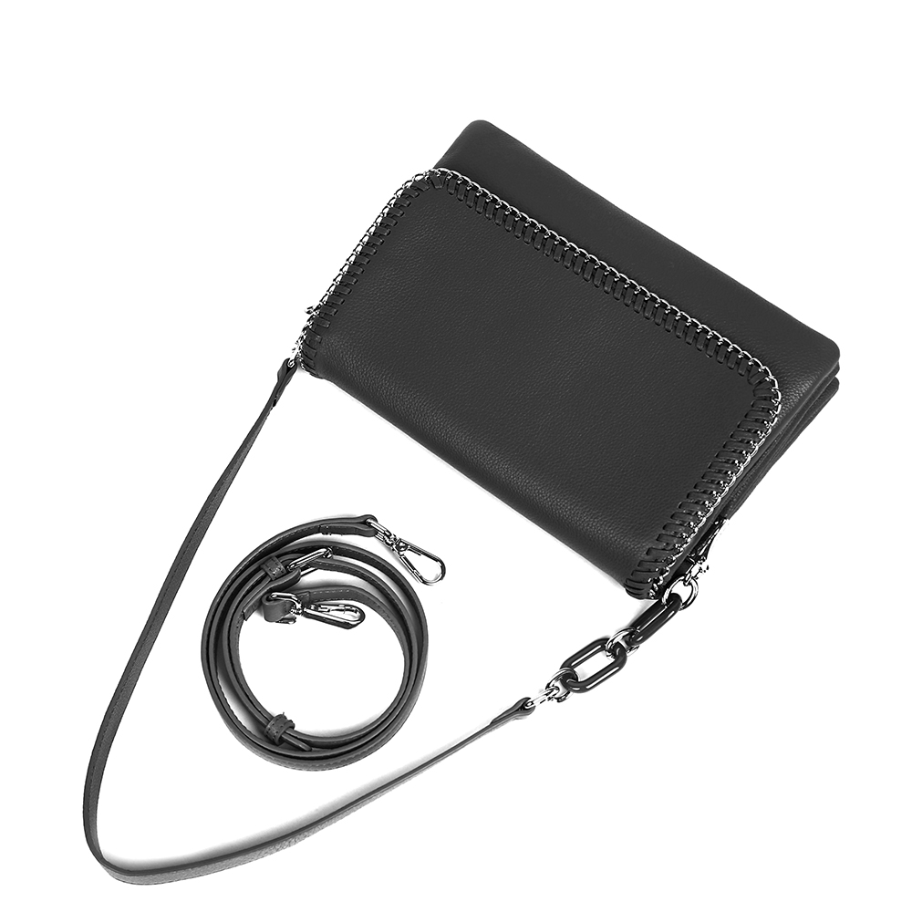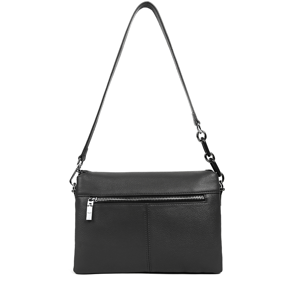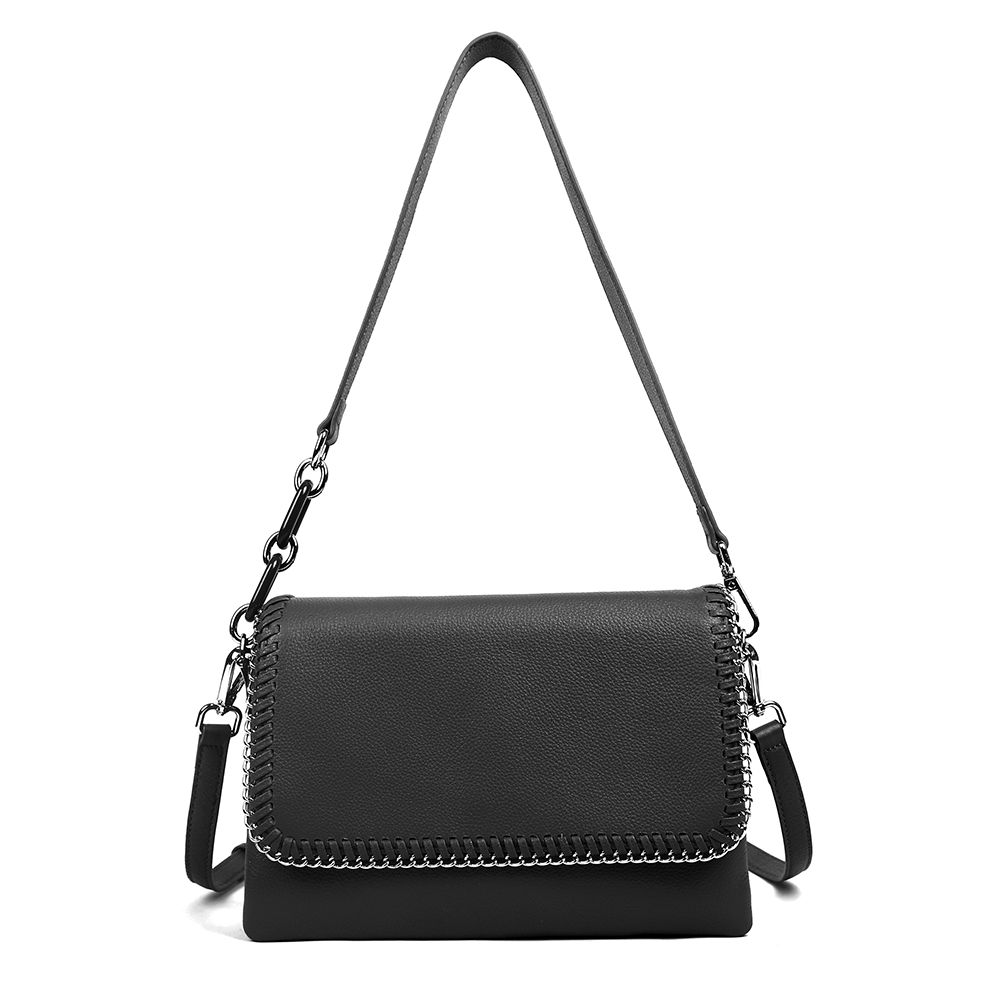 Оригинальная сумка через плечо Mironpan в черном цвете выполнена из натуральной зернистой кожи . Сумка закрывается клапаном который декорирован цепью на магнитной кнопке, под которым есть карман на молнии. Внутри сумка поделена на 3 основных отделения , два открытых и одно на молнии . В комплекте идут два съемных ремня . Цвет фурнитуры - серебро.