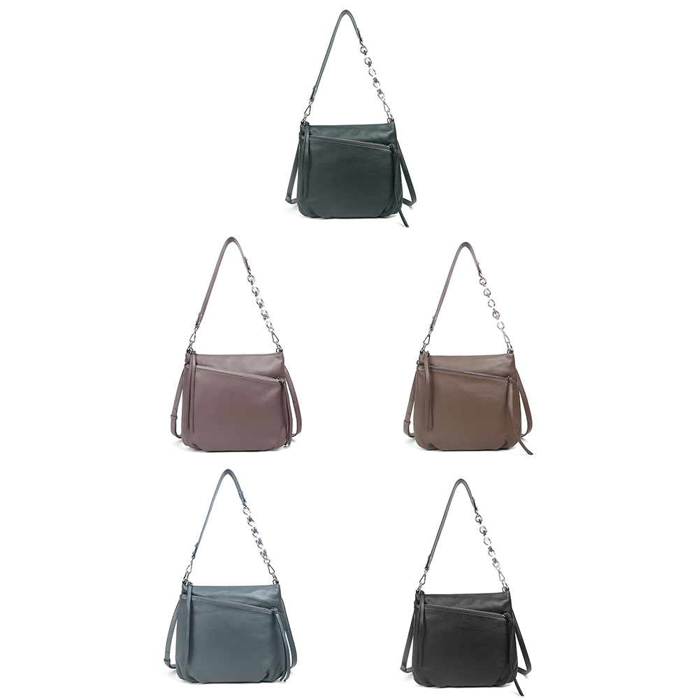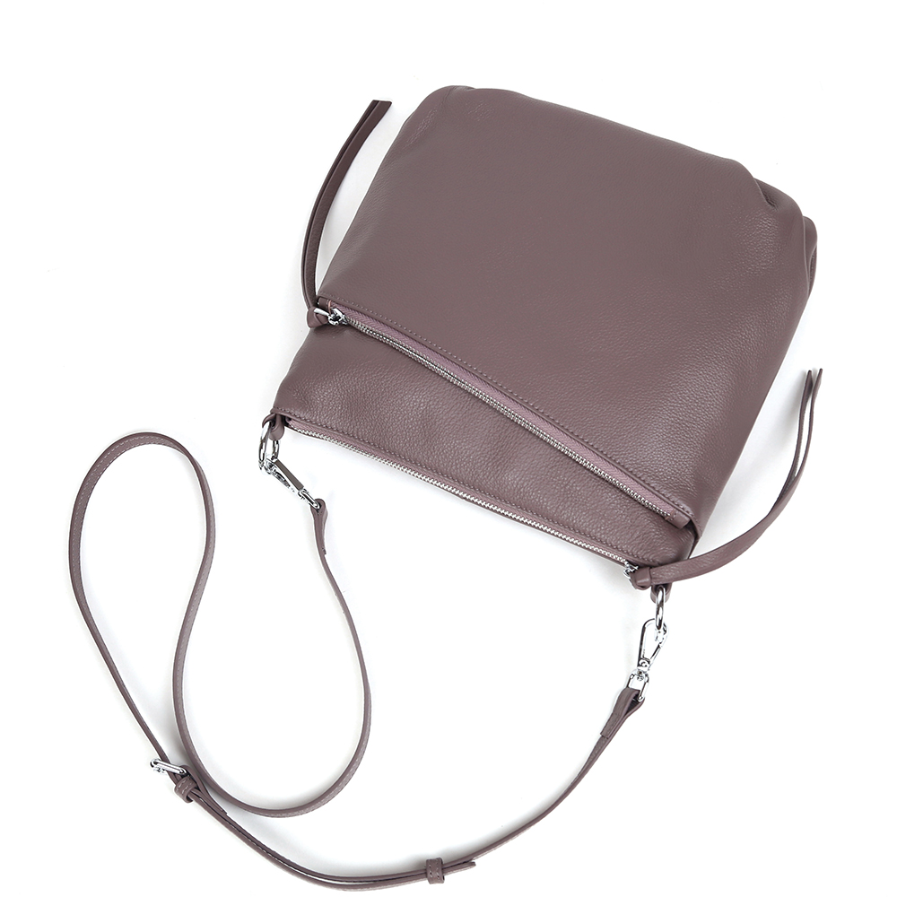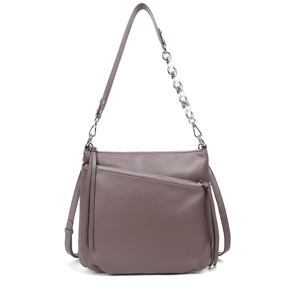 Женская сумка-хобо MIRONPAN вместительна и практична. Модель в светло- сиреневом цвете выполнена из натуральной зернистой кожи и отличается лаконичным дизайном. Сумка закрывается на молнию с металлическим поводком. Внутри 3 боковых кармана для мелочей: одно открытое и два на молнии. Лицевая сторона декорирована ассиметричным, вместительным карманом. На тыльной стороне предусмотрен карман быстрого доступа на молнии. Удобный ремень шириной 2,5 см , дополненный цепочкой с крупными звеньями, гармонично вписан в дизайн изделия и позволяет комфортно носить аксессуар на плече и в руке, второй плечевой ремень регулируется по длине, ширина - 1,5 см, Цвет фурнитуры - серебро.
