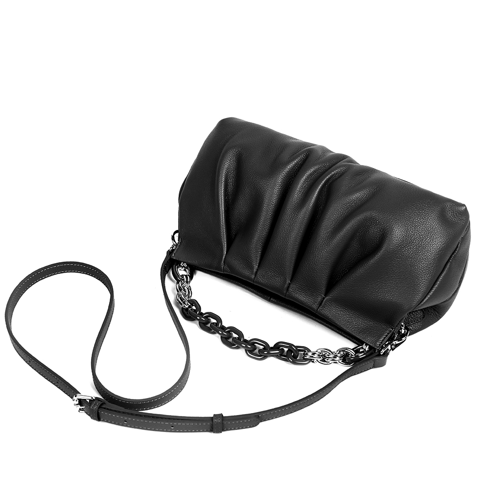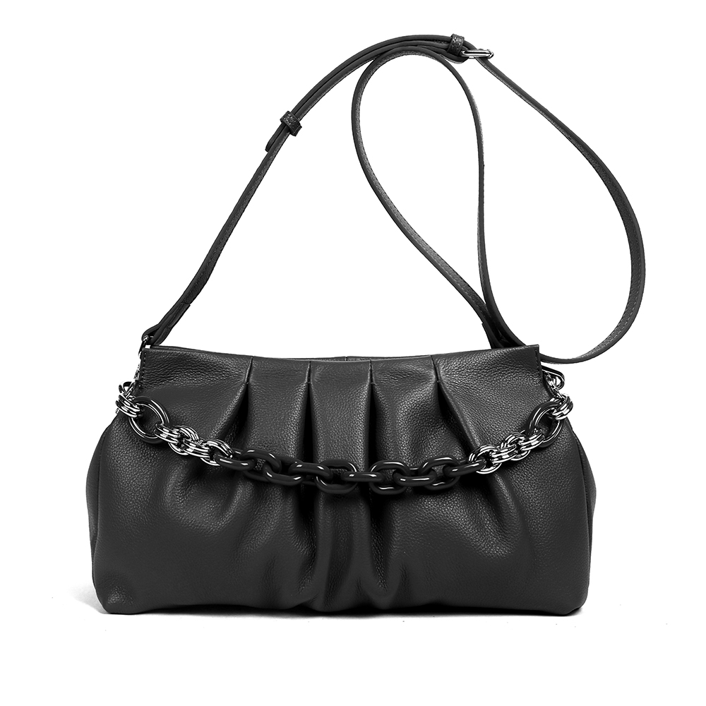 доступа на молнии. В качестве декора выступает съемная цепочка со средними звеньями, которая также может быть использована в качестве короткого ремня. Изящный плечевой ремень регулируется по длине, ширина - 1,5 см.