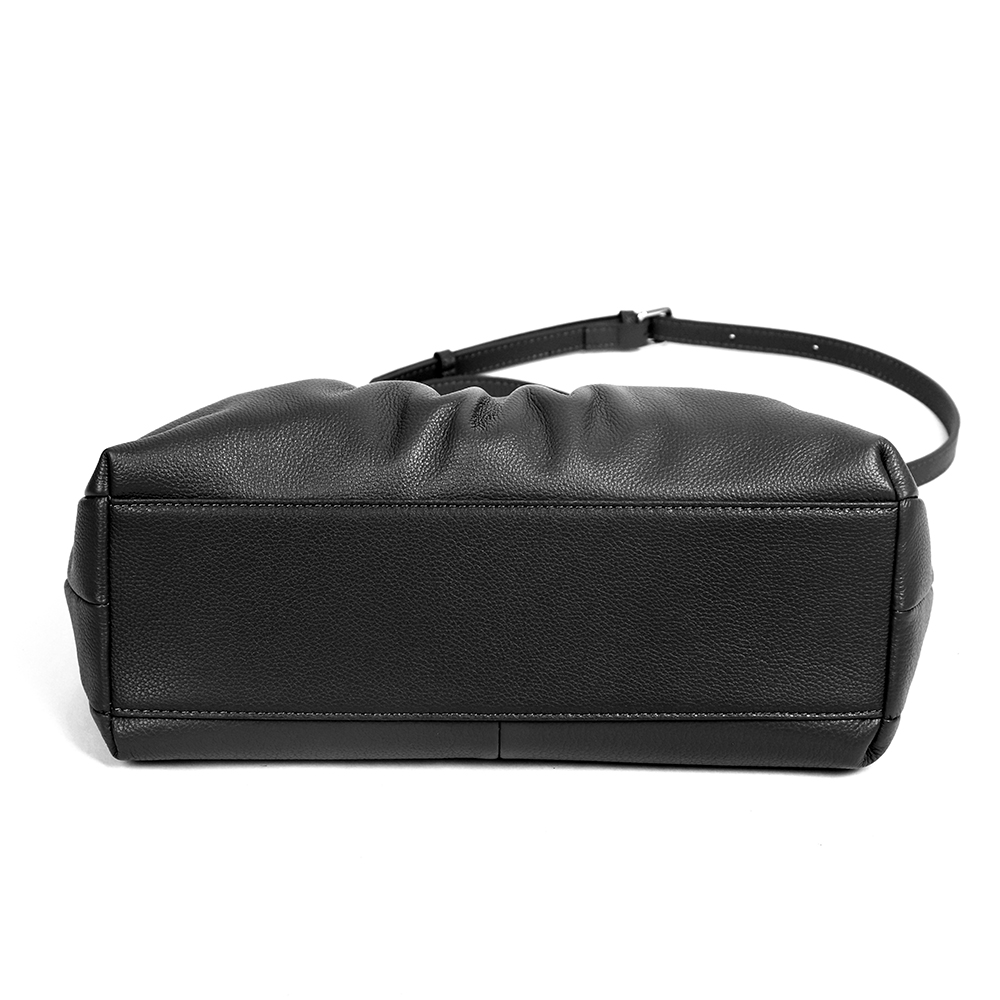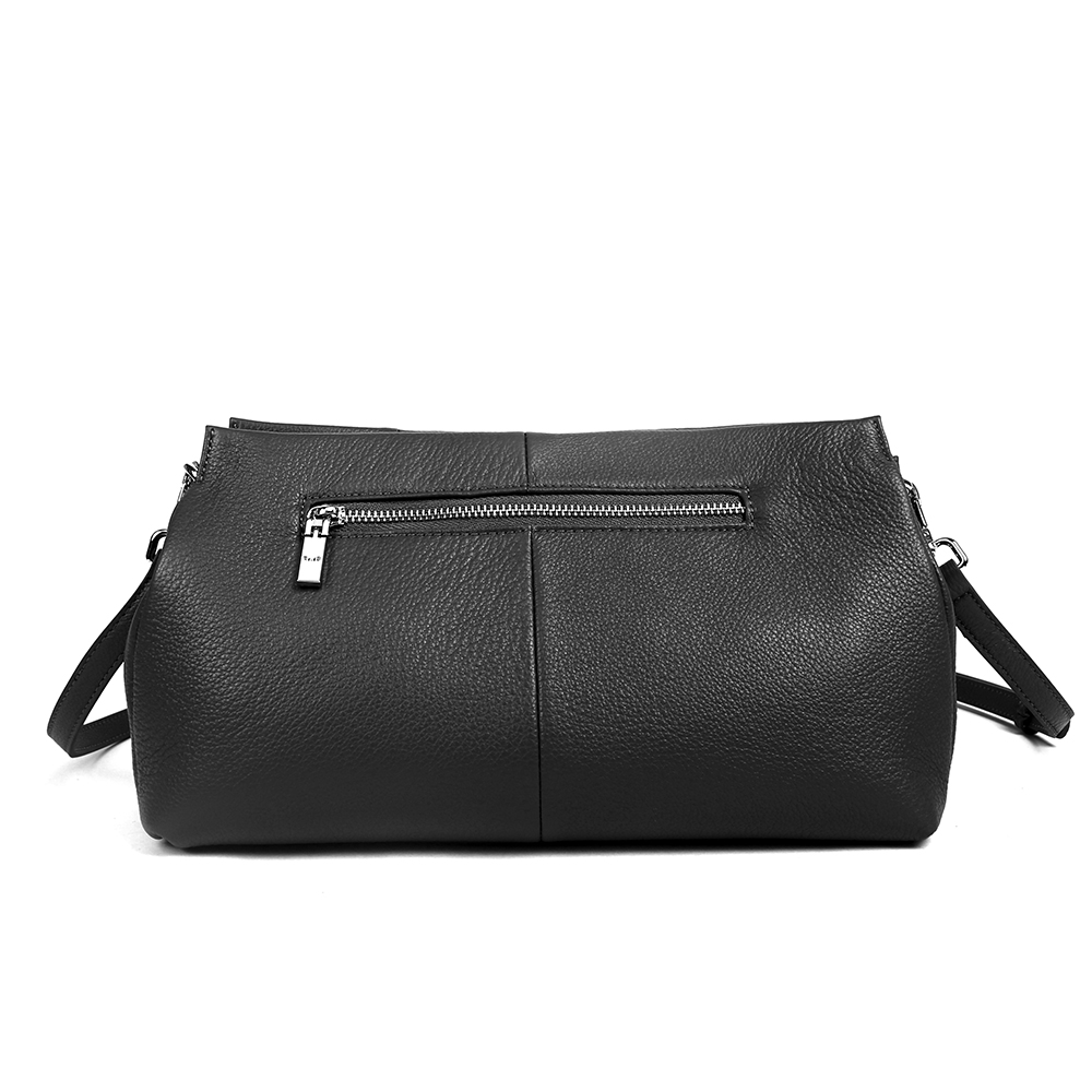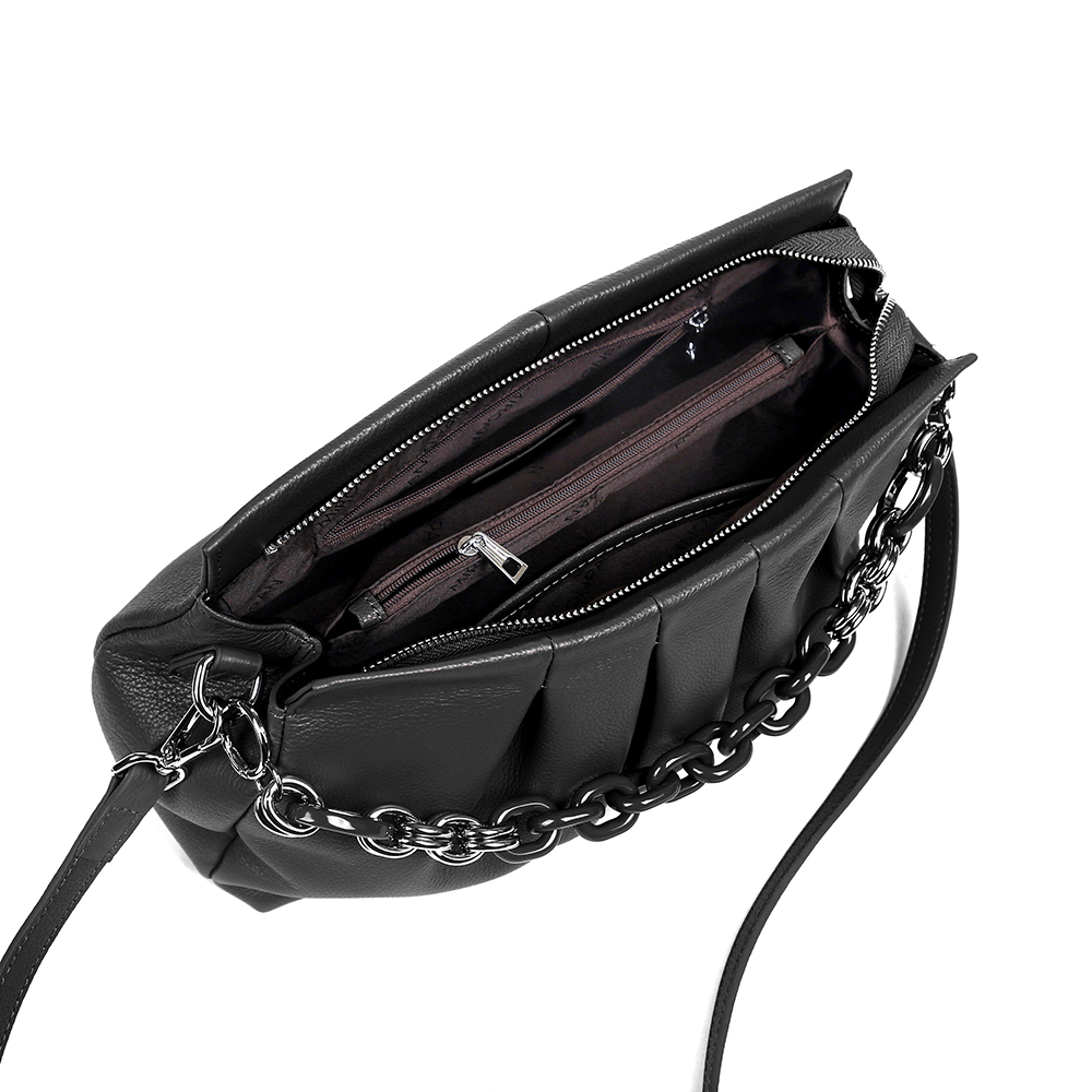 Стильная сумка на плечо MIRONPAN в черном оттенке выполнена из натуральной зернистой кожи и декорирована защипами, формирующими элегантные складки. Сумка закрывается на молнию. Внутри 2