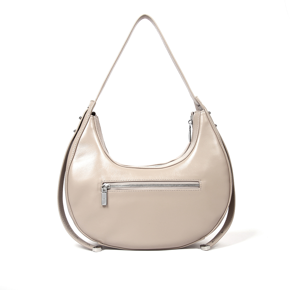 Сумка-хобо MIRONPAN в бежевом цвете выполнена из натуральной кожи приятной мягкой фактуры. Основное отделение закрывается на молнию с удобным поводком. Внутри расположены 3 боковых кармана для мелочей: 1 открытых и 2 на молнии. На тыльной стороне расположен карманы быстрого доступа на молнии. Плечевой ремень несъемный, длина регулируется.