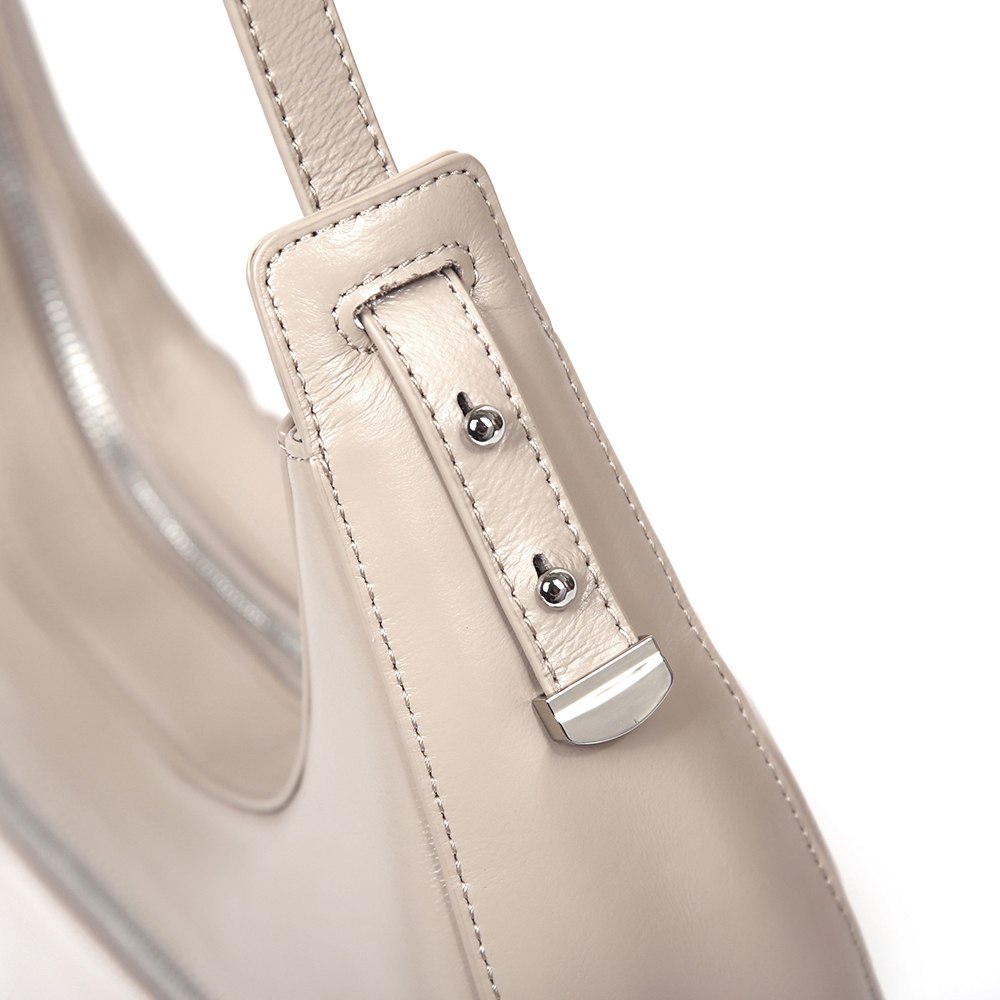 Габариты: 26 х 9 х 15 см (длина х ширина х высота); Материал: Кожа; Размер: Средний; Цвет: Бежевый; Цвет фурнитуры: Серебряный