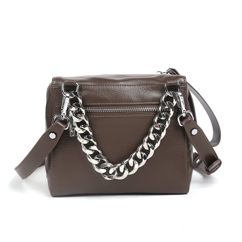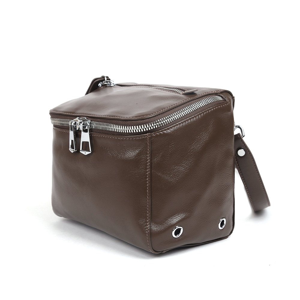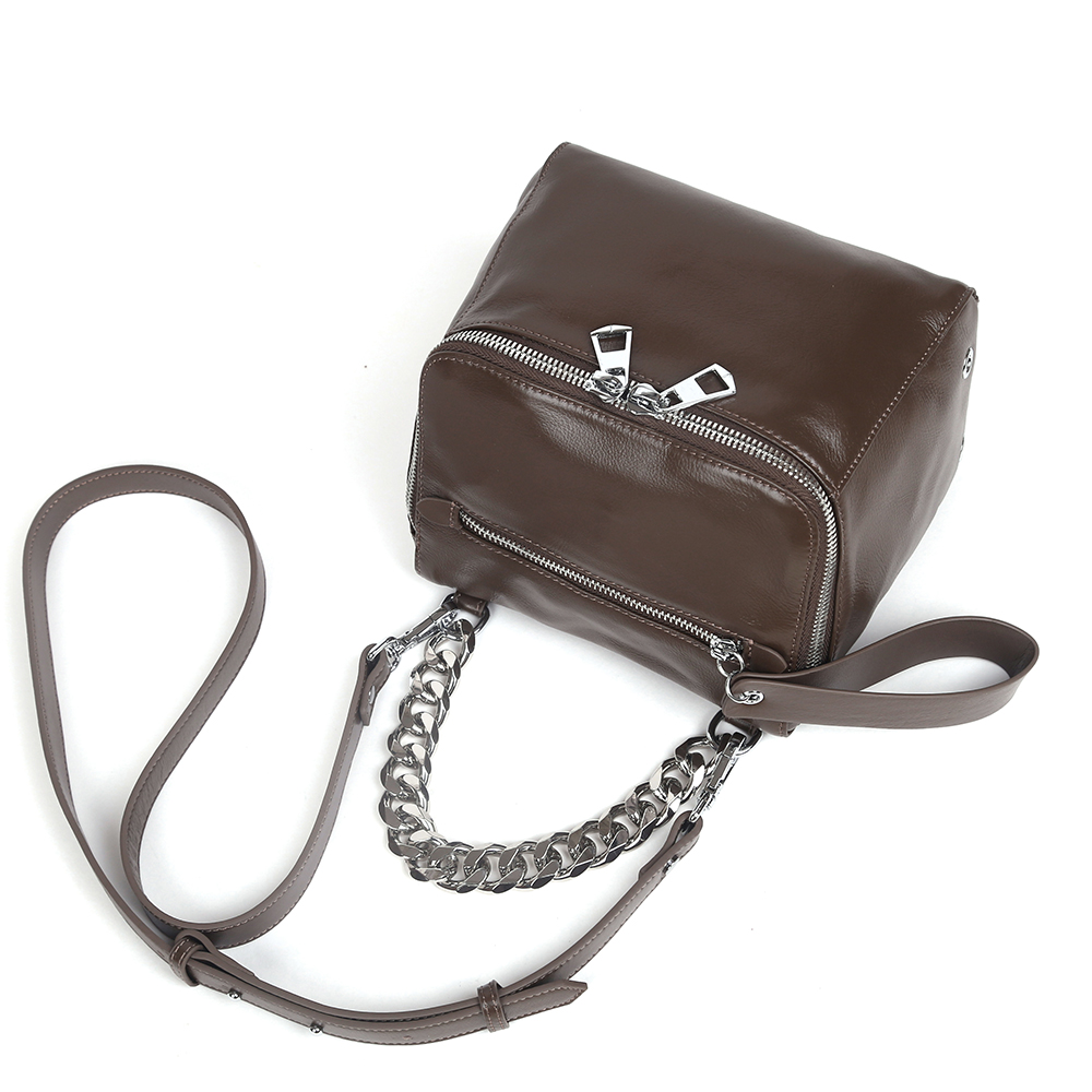 Габариты: 20 х 16 х 13 (длина х высота х ширина); Материал: Кожа; Размер: Средний; Цвет: Коричневый; Цвет фурнитуры: Серебряный