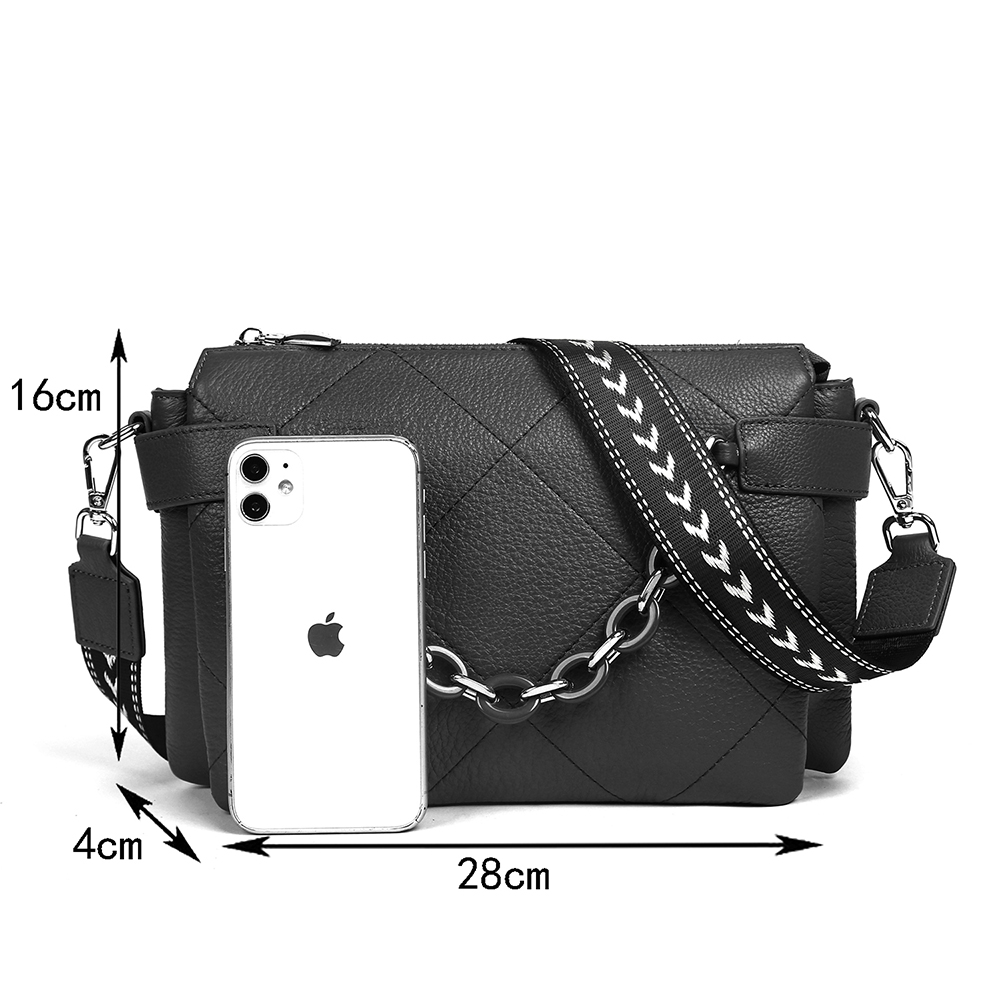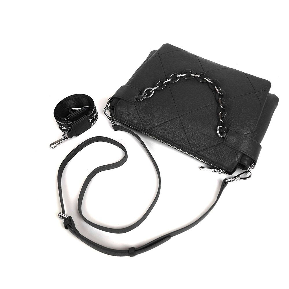 Габариты: Размер 28 х 16 х 4 (длина х высота х ширина); Материал: Кожа; Размер: Средний; Цвет: Черный; Цвет фурнитуры: Серебряный