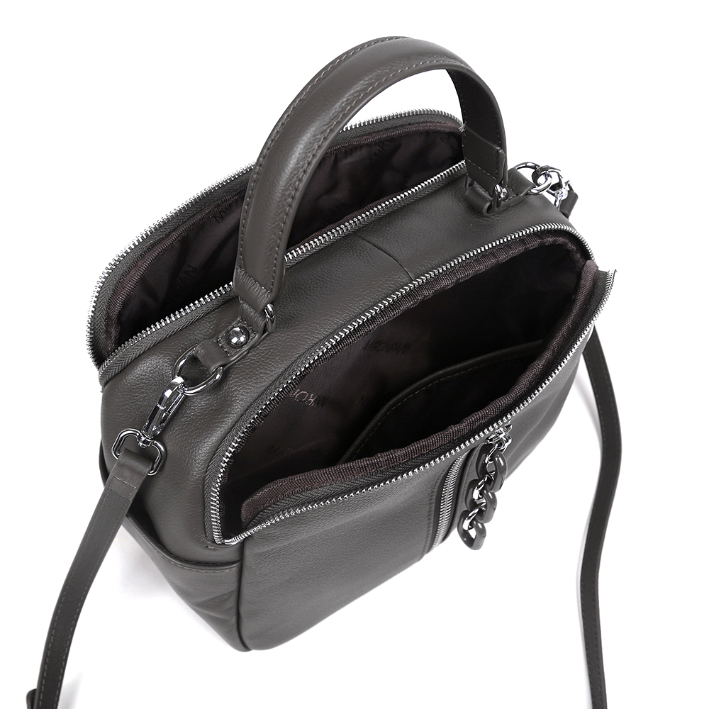 Габариты: 26 x 22 x 14 cm ( длина x высота x ширина); Материал: Кожа; Размер: Средний; Цвет: Графит; Цвет фурнитуры: Серебряный