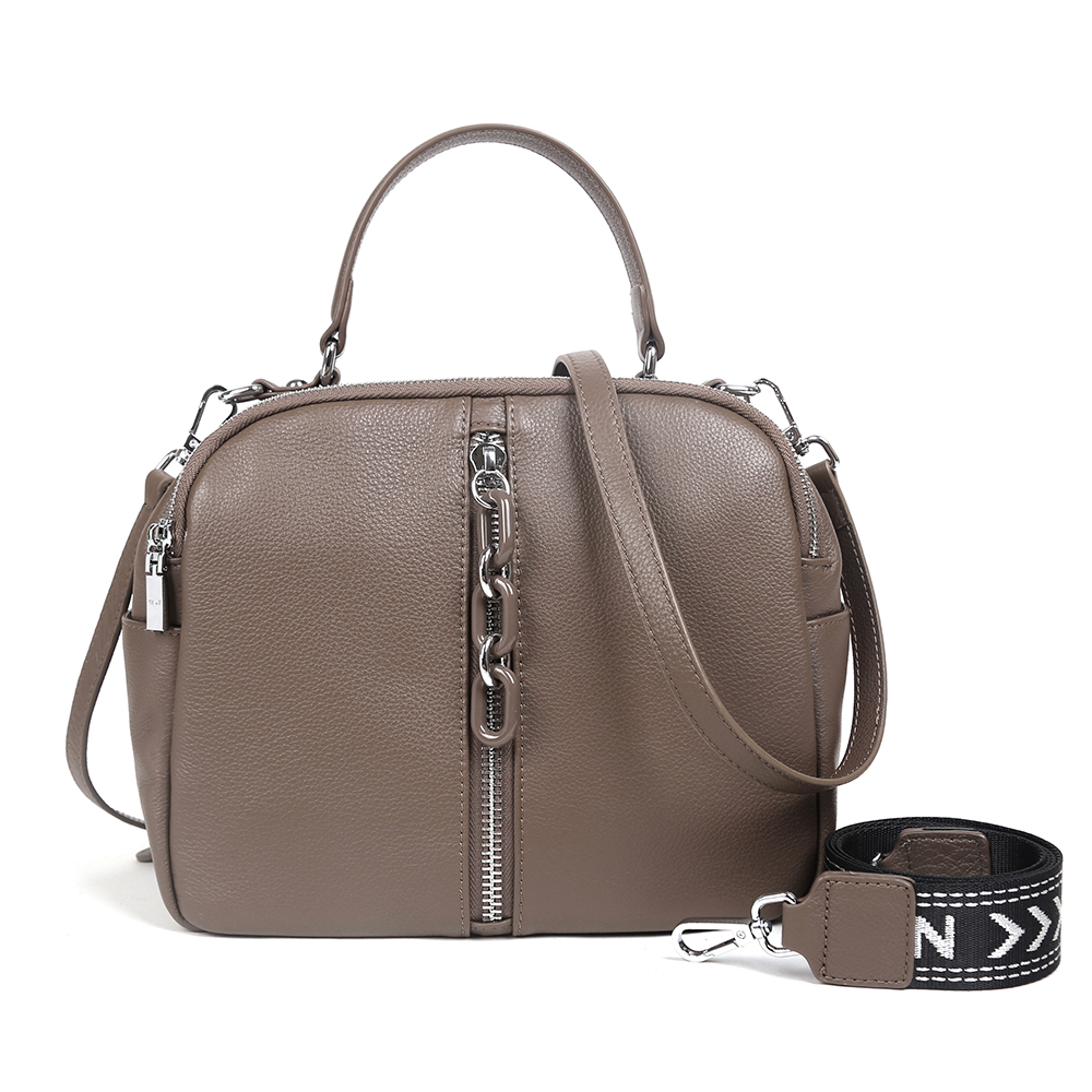Вместительная сумка MIRONPAN в цвете корица выполнена из натуральной зернистой кожи. В сумке 2 отделения, каждое из которых закрывается на полукруглую молнию. Внутри одного отделения есть боковой карман для мелочей на молнии, внутри другого - 2 открытых кармана. Лицевая сторона декорирована молнией с поводком цепочка. На тыльной стороне предусмотрен карман быстрого доступа на молнии. Дно сумки защищают 4 металлические ножки. Одна ручки позволяют комфортно носить аксессуар в руке , в комплект идут два ремня кожаный 1,5 см и тканевый 3,5см . Модель не вмещает формат А4.