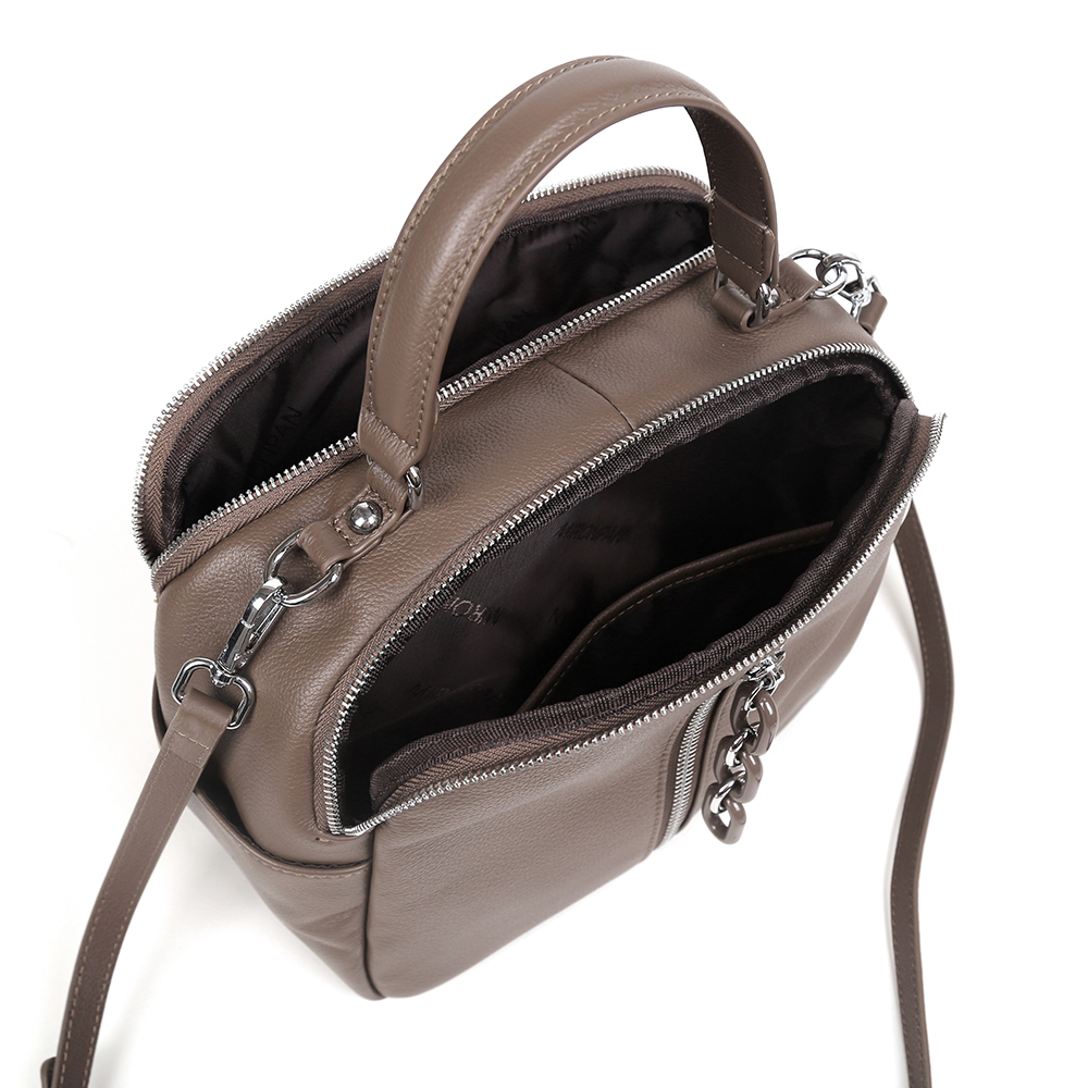Габариты: 26 x 22 x 14 cm ( длина x высота x ширина); Материал: Кожа; Размер: Средний; Цвет: Корица; Цвет фурнитуры: Серебряный