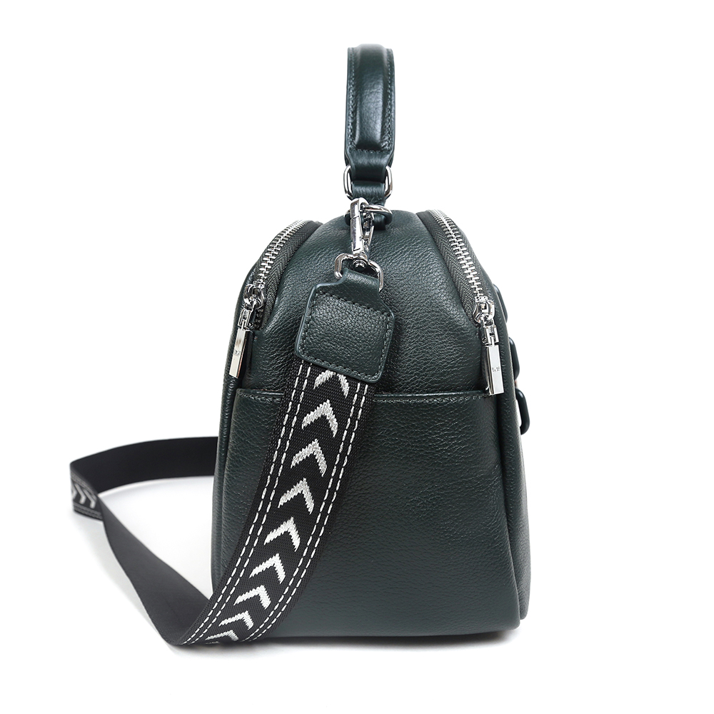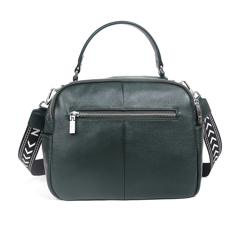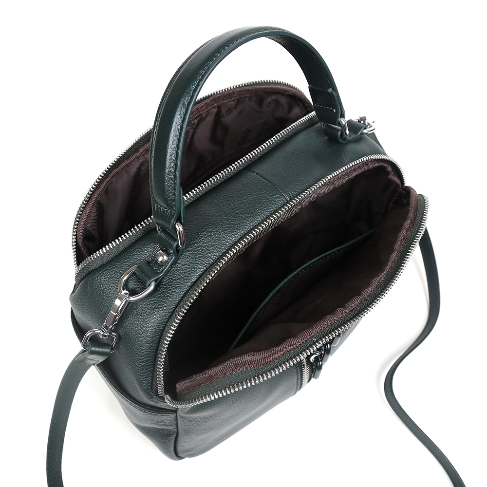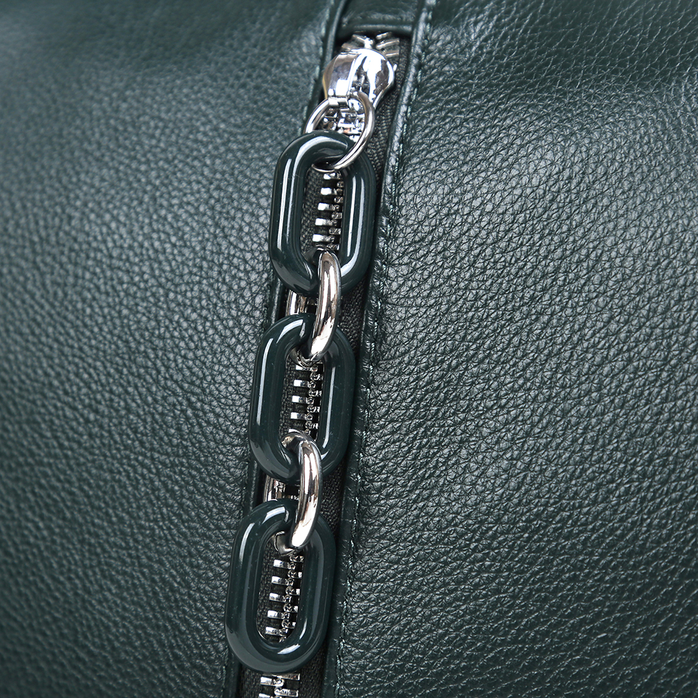 Габариты: 26 x 22 x 14 cm ( длина x высота x ширина); Материал: Кожа; Размер: Средний; Цвет: Темно-зеленый; Цвет фурнитуры: Серебряный