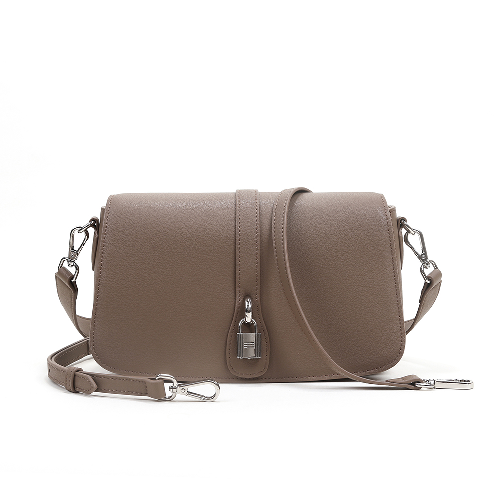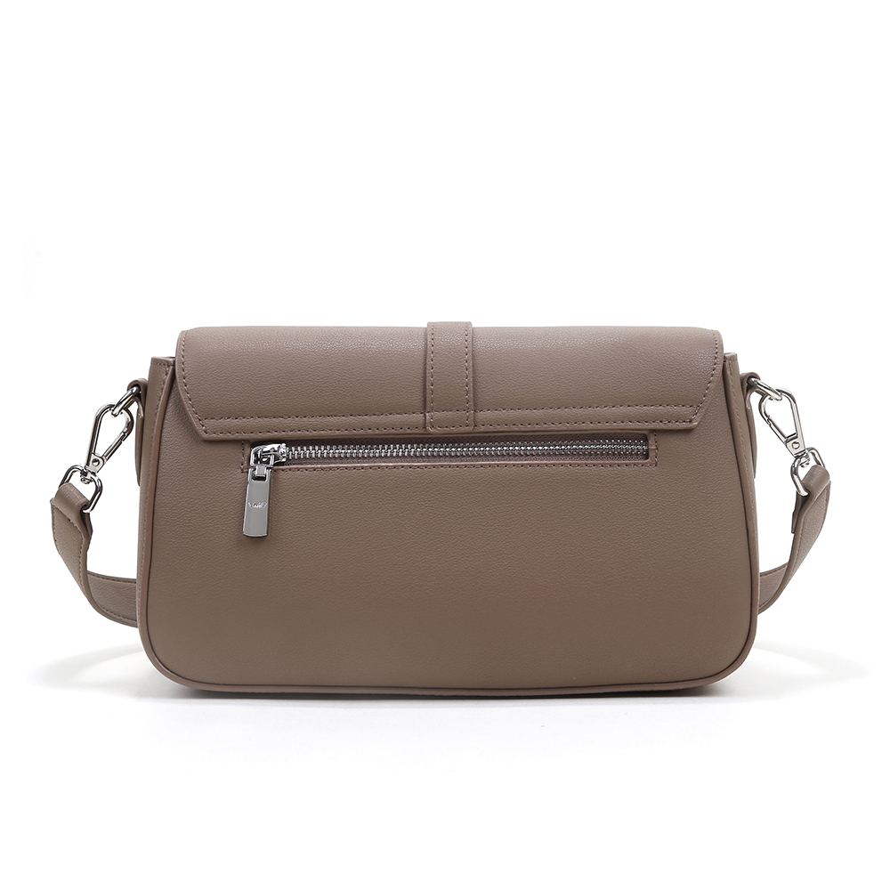 и клапаном на магнитные кнопки. Снаружи: карман на молнии. Данная модель декорирована фирменной серебристой фурнитурой, украшена декоративным замочком. Дополнительно: в комплекте идут 2 съемных кожаных плечевых ремешка.