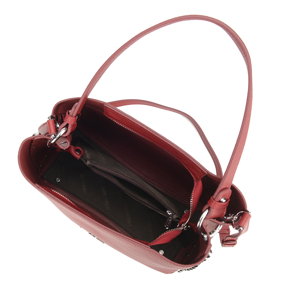 Габариты: 30x 21x 11 cm ( длина x высота x ширина); Материал: Кожа; Размер: Средний; Цвет: Бордовый; Цвет фурнитуры: Серебряный