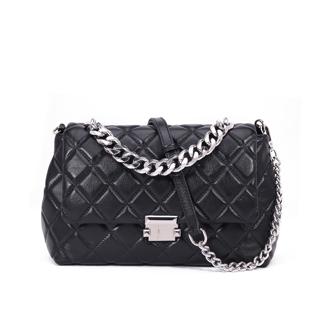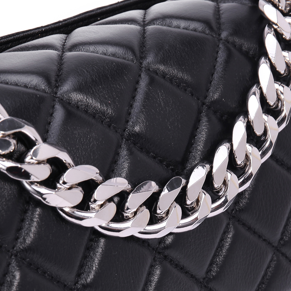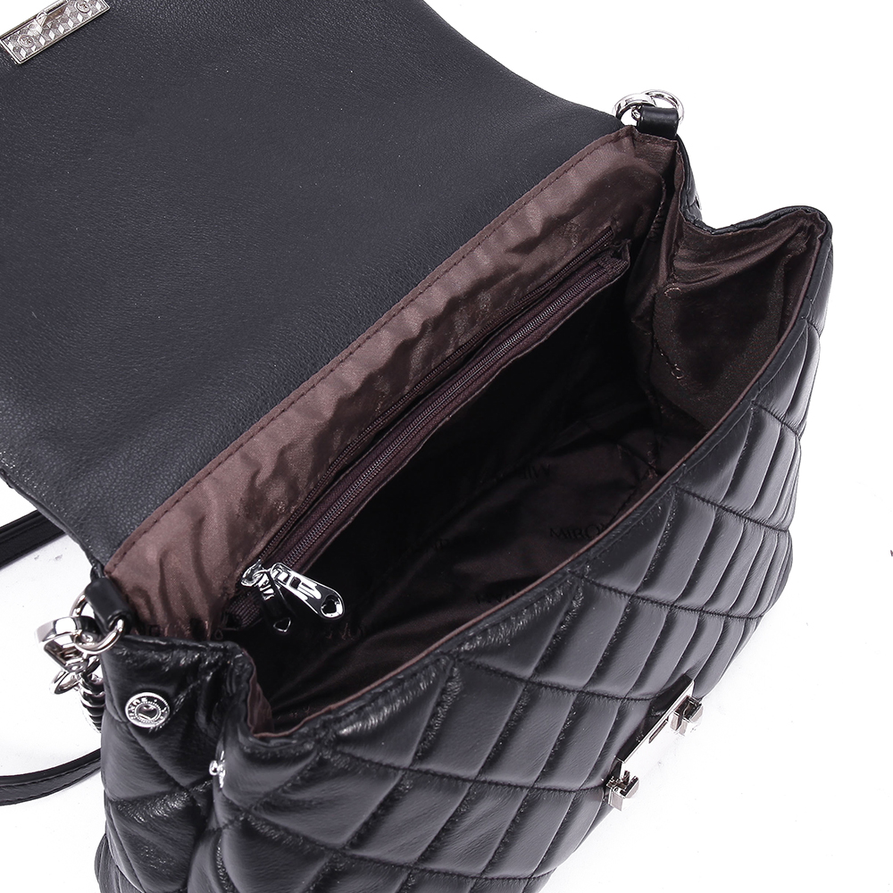 Вместительная сумка-сэтчел MIRONPAN выполнена из натуральной стёганой кожи гладкой фактуры. Сумка закрывается на клапан с механическим замком. Внутри просторного отделения есть 3 боковых кармана: открытый и два на молнии. На тыльной стороне есть карман на магнитной кнопке. В качестве декора использована цепочка с крупными звеньями, которая может исполнять функцию ручки. Ремень-цепочка съемный.