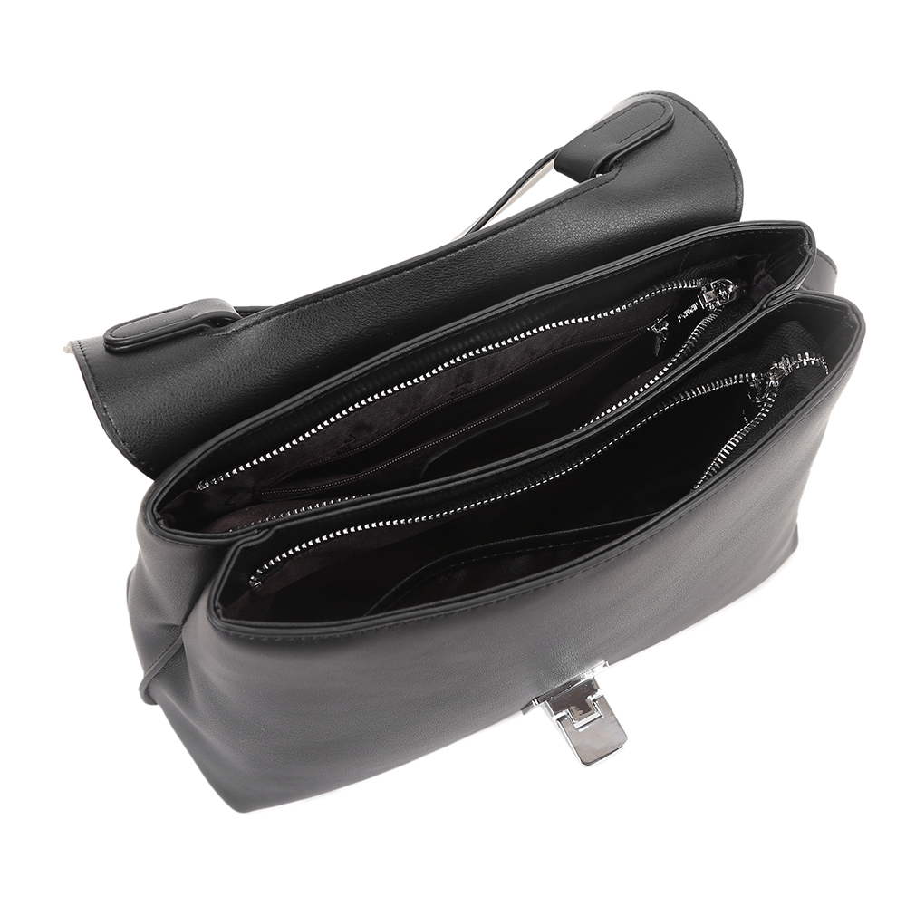 Габариты: 28 x 19,5 x 13cm ( длина x высота x ширина); Материал: Кожа; Размер: Средний; Цвет: Черный; Цвет фурнитуры: Серебряный