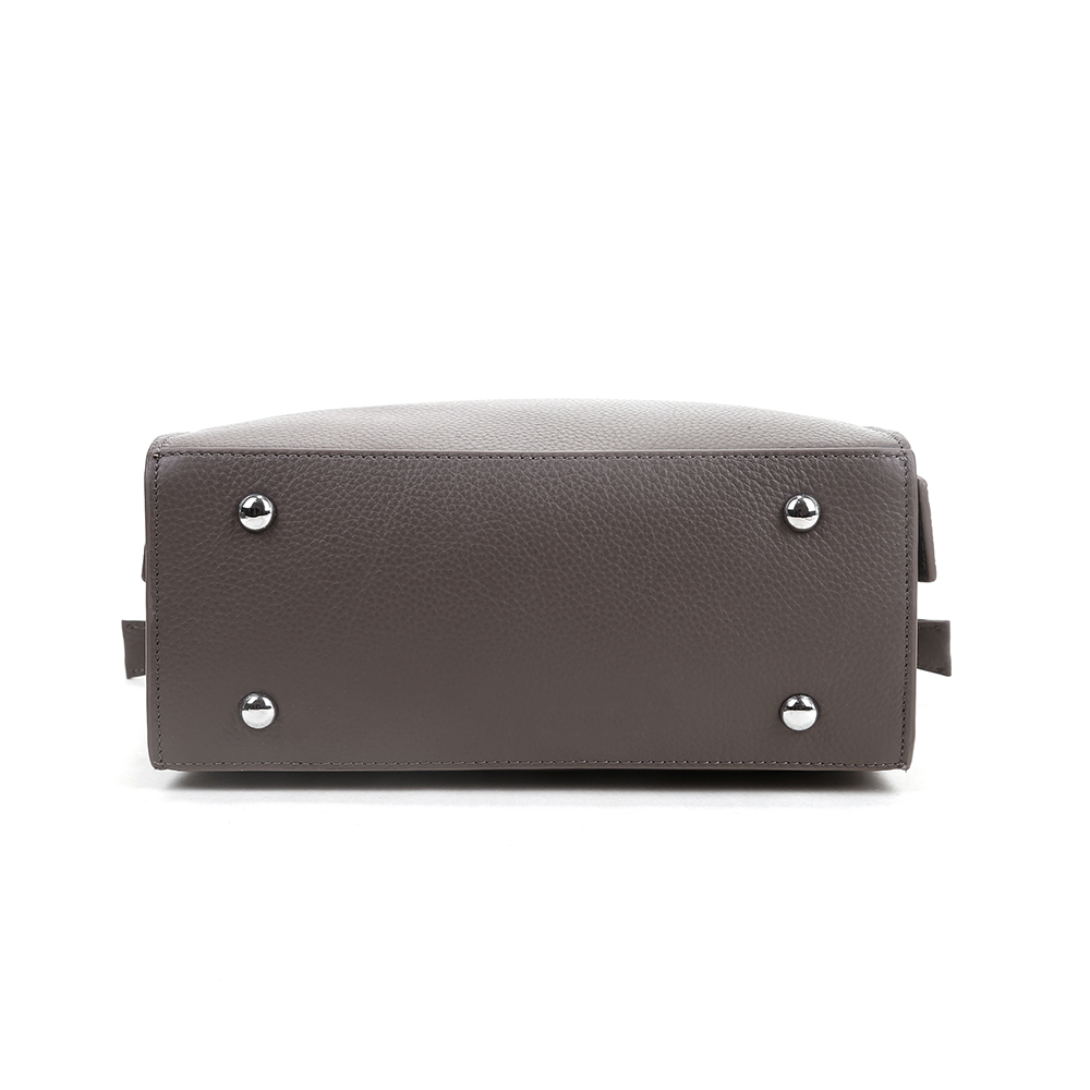 Габариты: 19 х 24 х 10 см ( высота х длина х ширина); Материал: Кожа; Размер: Маленький; Цвет: темно-серый; Цвет фурнитуры: Серебряный