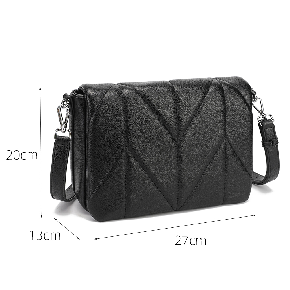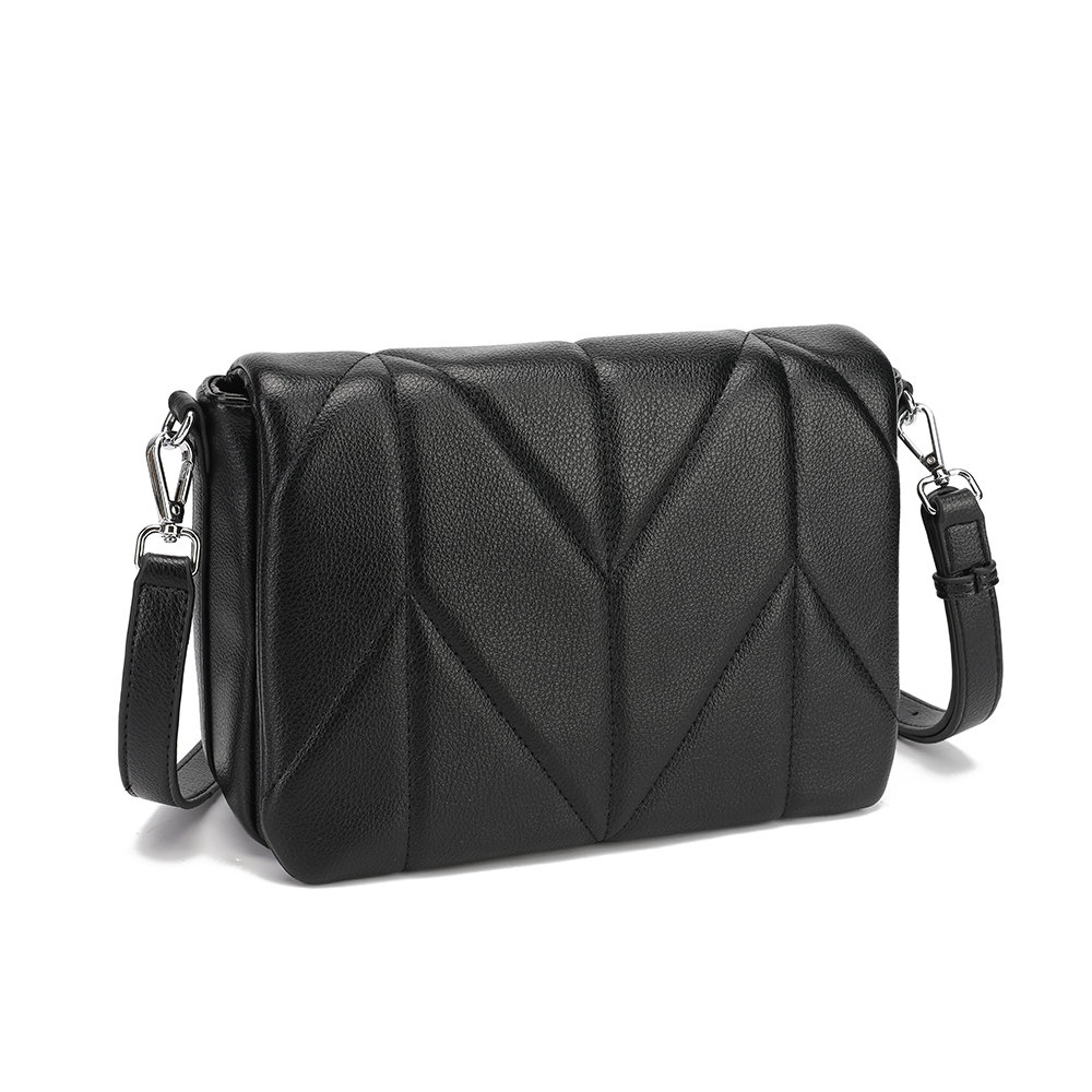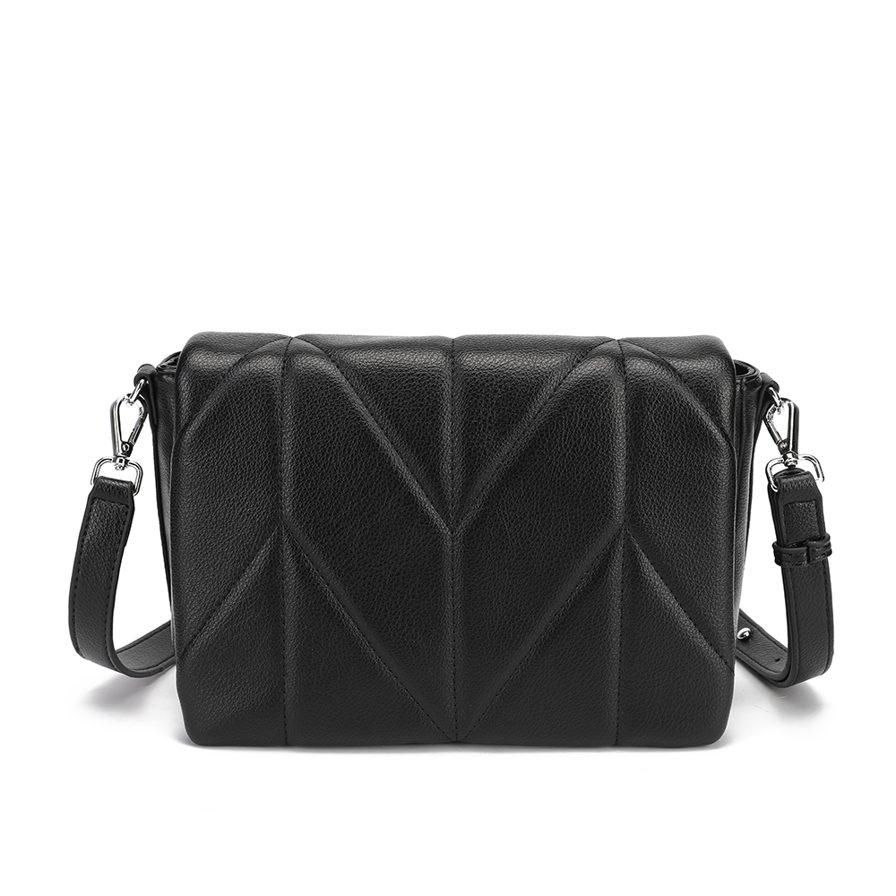 Эффектная кросс-боди Saint Miranda выполнена из экокожи зернистой текстуры и декорирован диагональной стёжкой. Сумка закрывается клапаном на 2 магнитные кнопки. Основное отделение - на молнии с удобным поводком. Внутри 2 отдела, разделенных средником с карманом на молнии. На внутренних боковых стенках есть 2 кармана для мелочей: открытый и на молнии. На тыльной стороне предусмотрен карман быстрого доступа на молнии. Съёмный плечевой ремень регулируется по длине, ширина - 2 см.