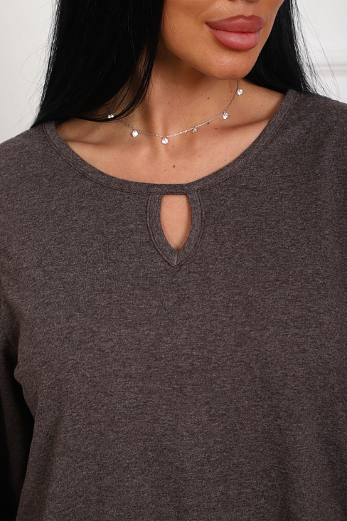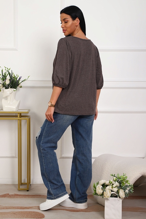 Материал: Кулирка; Состав: 70% хлопок, 30% полиэстер; Застежка: Без застежки; Длина рукава: 3/4 рукав; Размерный ряд: 50-60; Цвет: Коричневый; Тип рисунка: Однотонный
