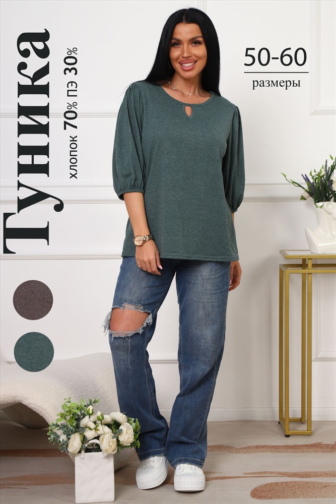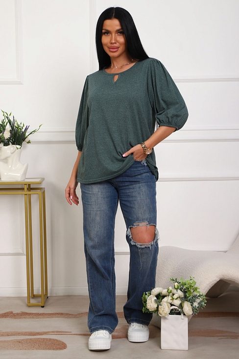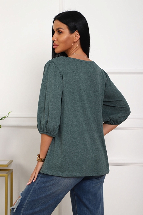 Материал: Кулирка; Состав: 70% хлопок, 30% полиэстер; Застежка: Без застежки; Длина рукава: 3/4 рукав; Размерный ряд: 50-60; Цвет: Зеленый; Тип рисунка: Однотонный