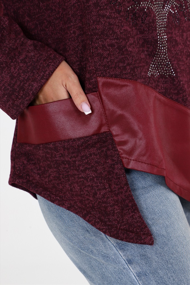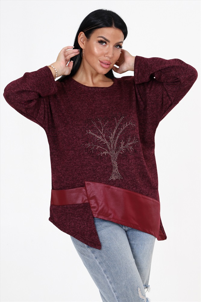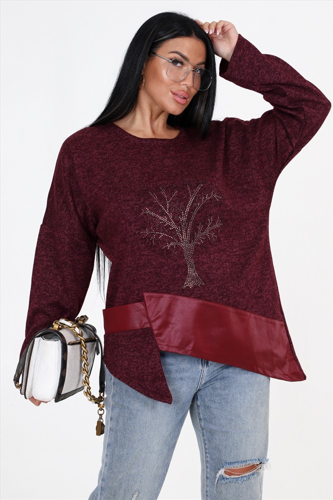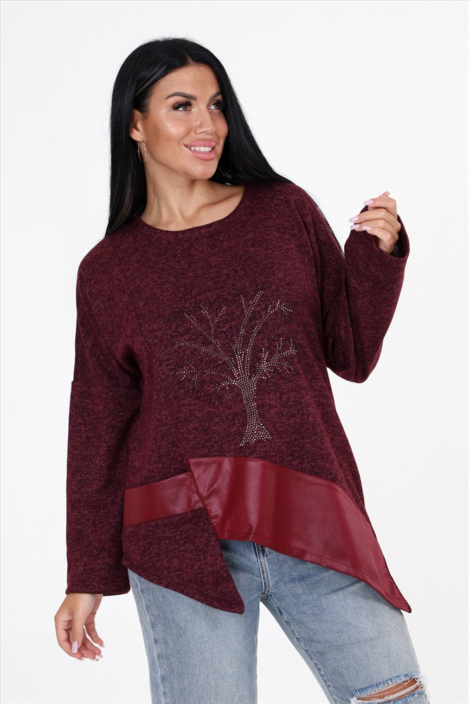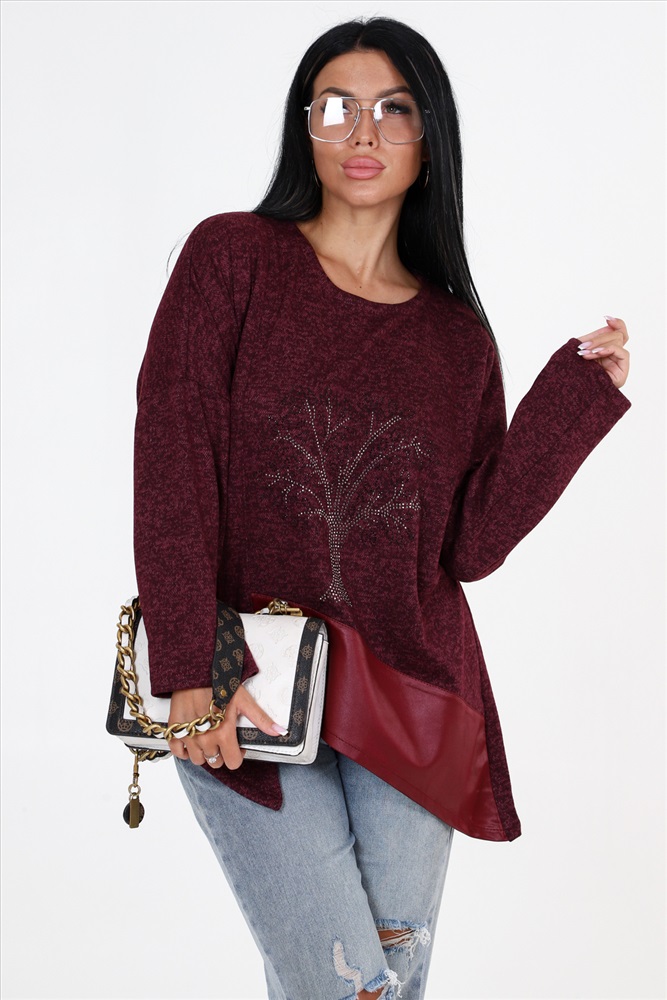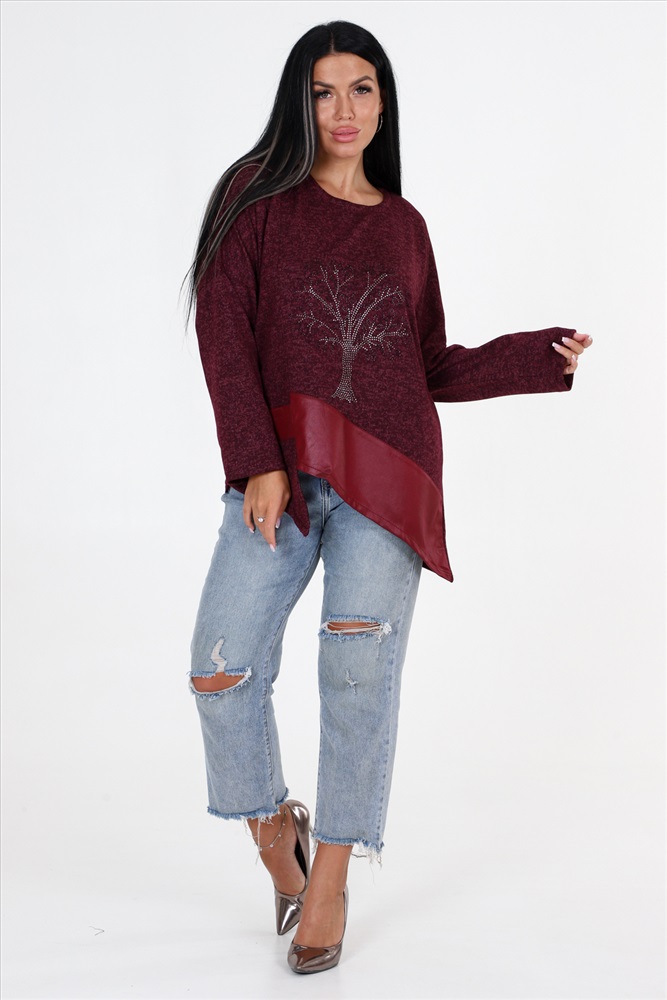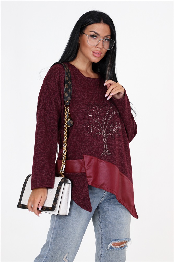 Выбирайте женскую тунику свободного кроя с впечатляющими деталями! Наша уникальная туника имеет прекрасно украшенную полочку со стразами и вставками из стретч-кожи, которые придают ей особый шарм. Низ изделия имеет фигурную отделку, добавляющую дополнительный элемент стиля. Спущенные длинные рукава прекрасно дополняют общий образ.