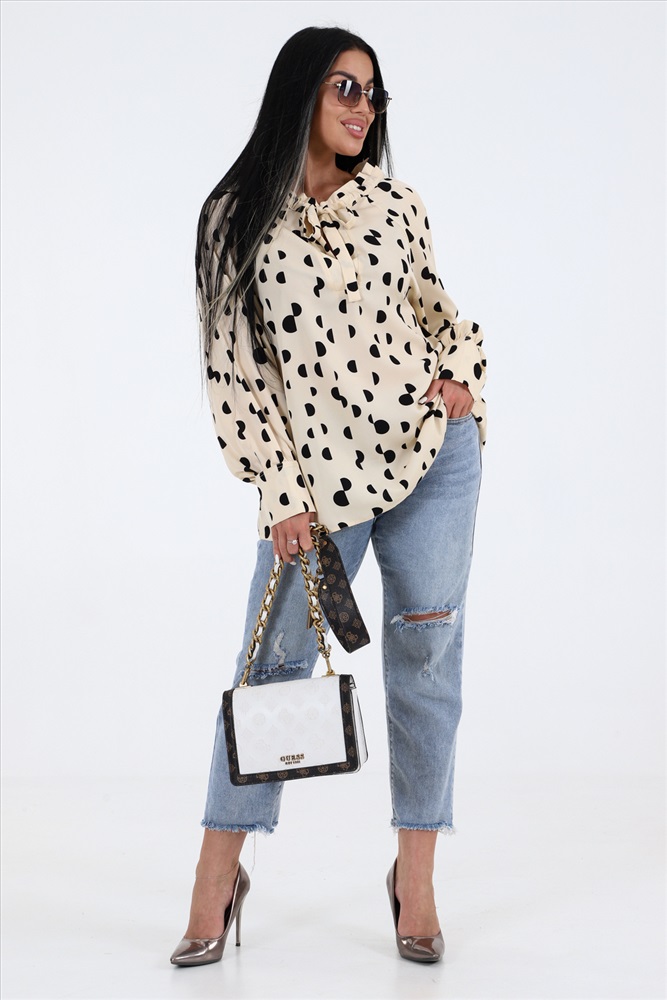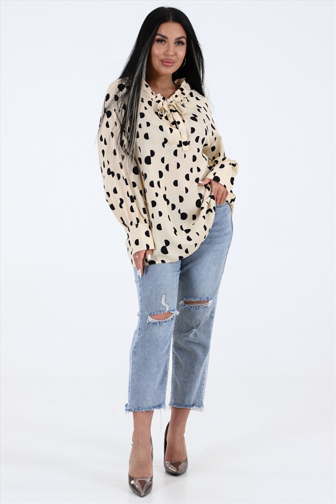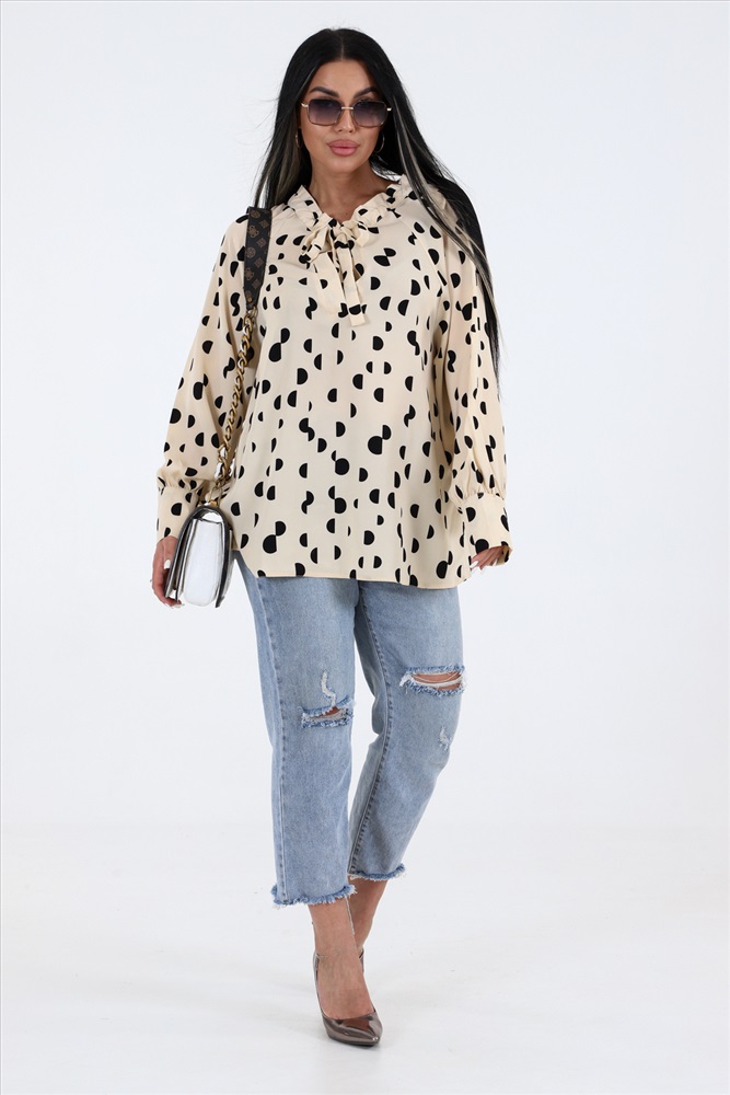 Состав: 90% полиэстер; 10% вискоза Модель: Женская туника 31924 Тип товара: туника Материал: суперсофт | суперсофт Бренд: Натали Суслова Карман: без карманов Отделка: с манжетами | со шнурком Рисунок: горошек Рукав: длинный рукав Сезонность: лето | осень | весна Силуэт: свободный Стиль: повседневный Воротник: воротник хомут Застежка: без застежки Женская туника из материала софт с оригинальным воротником-стойкой, который затягивается на ленту, представляет собой идеальный выбор для стильных и модных женщин. Ее оверсайз покрой подчеркнет вашу индивидуальность, а длинные рукава на манжете в форме фонарика добавят неповторимости вашему образу. Великолепный рисунок в виде горошка делает эту тунику особенно привлекательной. Наша женская туника доступна в двух элегантных расцветках: черной и бежевой. Такое разнообразие позволяет вам выбрать наиболее подходящий вариант, который сочетается с вашим стилем и настроением. Более того, у нас в наличии широкий размерный ряд от 48 до 58, что позволяет найти идеальную посадку для любой фигуры. Приобретая нашу тунику, вы получаете не только превосходное качество и стильный дизайн, но и комфорт, которые будут сопровождать вас на протяжении всего дня Таблица размеров и веса
