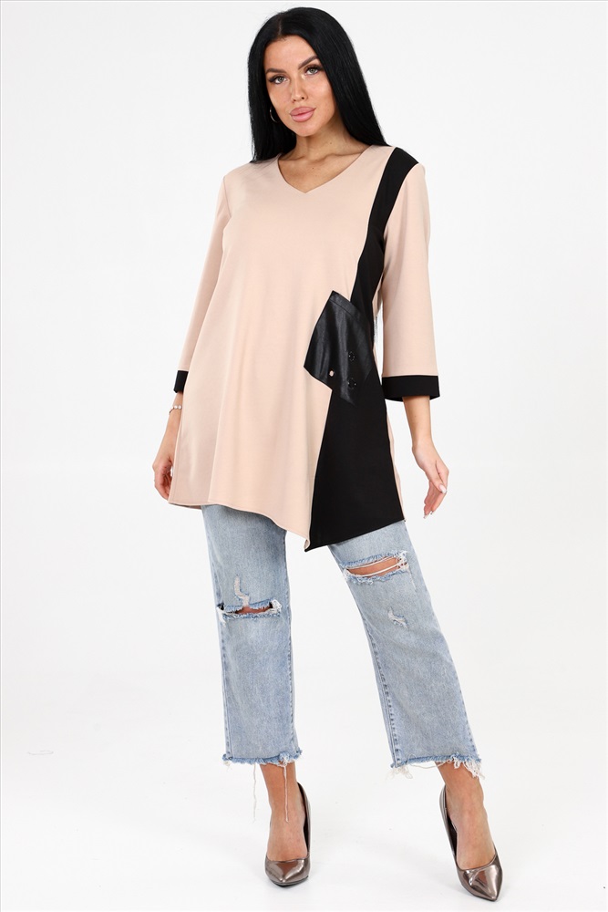 Состав: 75% полиэстер, 20% вискоза, 5% спандекс Модель: Женская туника 31932 Тип товара: туника Материал: атаман | атаман Бренд: Натали Суслова Карман: накладные Отделка: с карманами Рисунок: колорблок Рукав: рукав 3/4 Сезонность: осень | весна Силуэт: свободный Стиль: повседневный Воротник: без воротника Застежка: без застежки Эта элегантная туника с асимметричным кроем - идеальное решение для модных и уверенных в себе женщин. Комбинация двух цветов добавляет оригинальности и создаёт эффектный визуальный акцент, что делает эту тунику незаменимой в вашем гардеробе. Она отлично подходит для любого случая: будь то прогулка по городу, вечер с друзьями или даже деловая встреча. Ассиметричный крой не только привносит в образ стиль, но и визуально корректирует фигуру, выгодно подчёркивая её достоинства. Легкий и приятный на ощупь материал обеспечивает комфорт на целый день. Он отлично пропускает воздух, не сковывает движения и легко поддается уходу. Рукав 3/4 на манжете добавляет изысканности и позволяет носить тунику в разнообразных погодных условиях. Особое внимание здесь уделено деталям. Накладной карман с отделкой из люверсов не только функционален, но и служит стильным декоративным элементом. Этот акцент делает тунику уникальной и выделяет вас среди других. Ключевые слова: стильная туника, туника с асимметричным кроем, двухцветная туника, туника для любого случая, женская туника с карманом, декоративные люверсы, туника с рукавами 3/4, модная туника, комфортная женская одежда, гардероб современной женщины. Подарите себе возможность выглядеть стильно и уверенно в любой ситуации. Эта туника станет вашим верным спутником в любых приключениях! Таблица размеров и веса