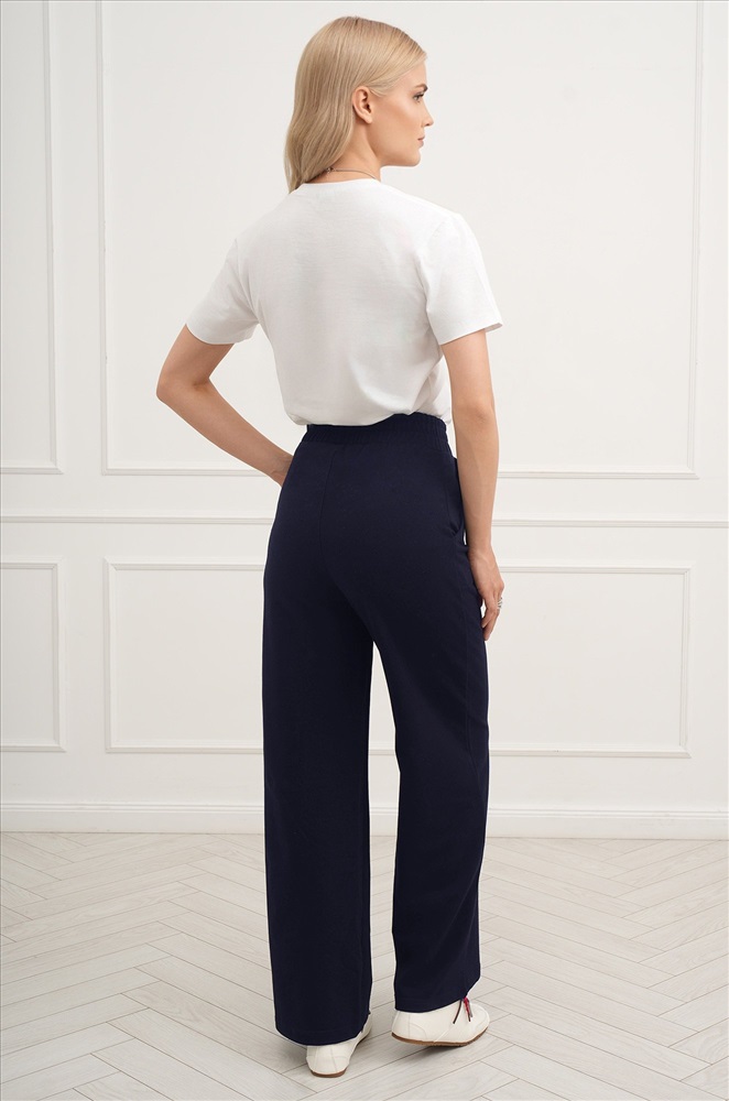 Темно-синие женские брюки палаццо созданы, чтобы дарить свободу движения и уверенность в каждом шаге. Мягкий хлопковый трикотаж делает их особенно приятными и удобными на каждый день.