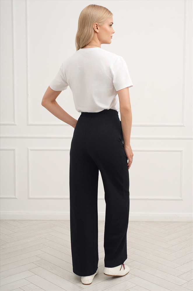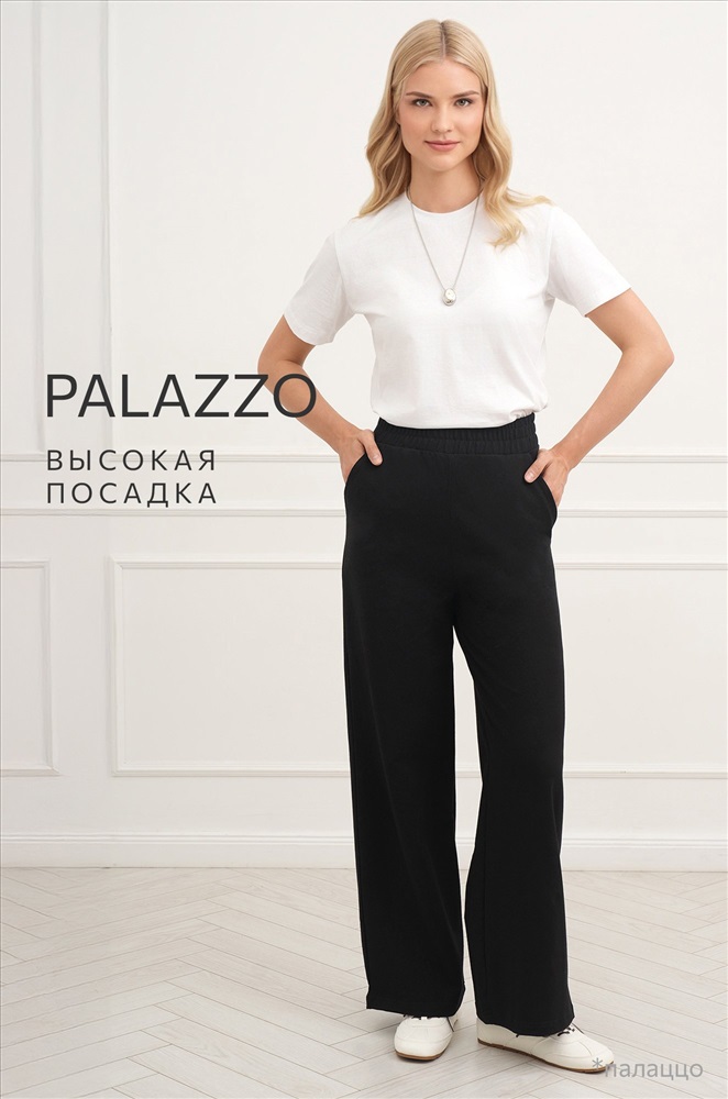 Чёрные женские брюки палаццо созданы, чтобы дарить свободу движения и уверенность в каждом шаге. Мягкий хлопковый трикотаж делает их особенно приятными и удобными на каждый день.