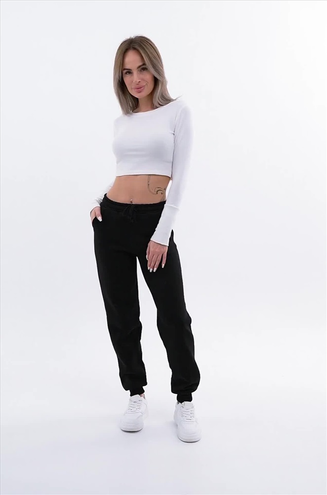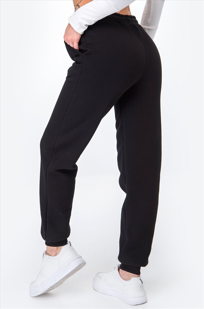 Теплые женские брюки с начесом – комфортный вариант для прохладных дней. Однотонные джоггеры выполнены из мягкого хлопка и представлены в базовом черном цвете. Удобные карманы, пояс на резинке, регулирующийся шнурком, манжеты – каждая деталь создана для вашего комфорта этой осенью.