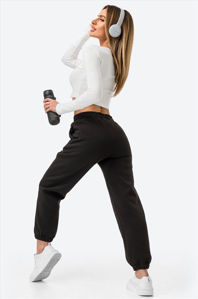 Утепленные брюки с начесом актуальны с приближением морозов для любителей активного отдыха на природе. Женские джоггеры выполнены из трикотажа с высоким содержанием хлопка. Однотонные штаны с карманами представлены в черном цвете.