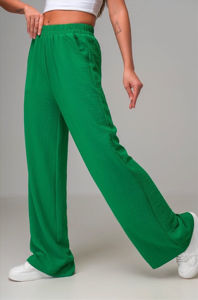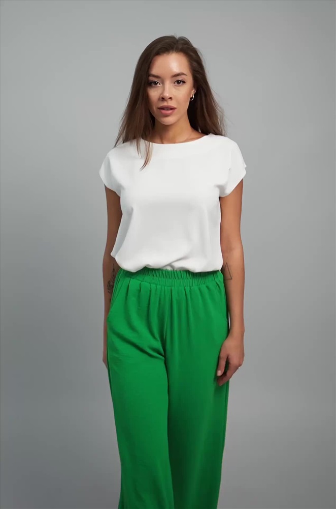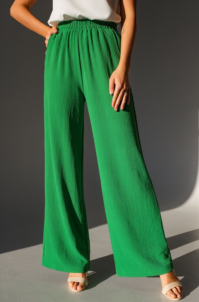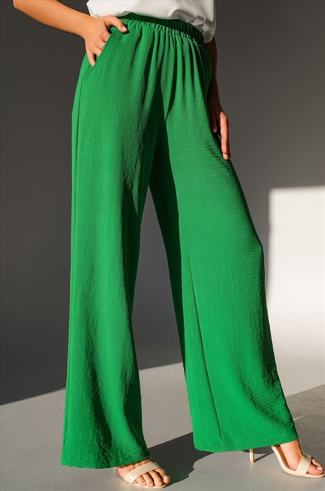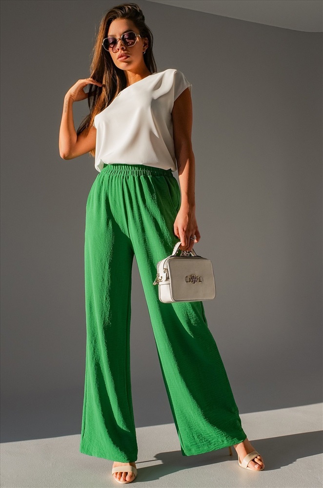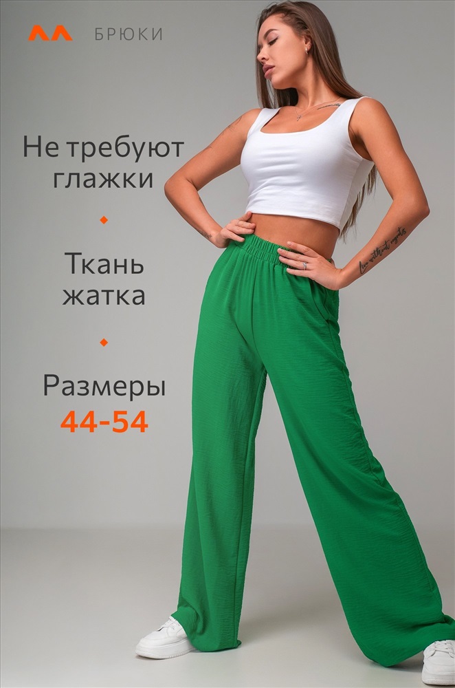 Зеленые штаны станут ярким акцентом даже в простом повседневном образе. Удобные и практичные летние брюки с высокой посадкой подчеркнут достоинства фигуры. Благодаря свободному крою брюки не стесняют движений.