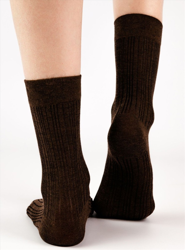 Женские носки торговой марки Indefini. Женские теплые высокие носки коричневого цвета изготовлены из смеси материалов для максимального комфорта. Они содержат овечью шерсть для тепла и мягкости, нейлон и акрил для прочности и эластичности, а также вискозу для дополнительной мягкости. Эти носки идеально подходят для холодной погоды и обеспечат ногам тепло и комфорт на протяжении всего дня.