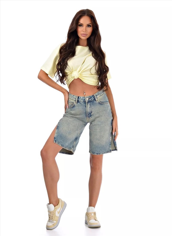 Производитель: Cracpot; Страна: Турция Размер на модели 26. Длина изделия 52 см длина внутреннего шва - 26см ширина низа брючин - 25 см длина бокового разреза - 28см Хочешь визуально вытянуть ноги? Надень бермуды CRACPOT с укороченным топом и обувью на платформе или каблуке — эффект «длинных ног на миллион» обеспечен. А еще: разрезы не только модный акцент, но и плюс к комфорту в жару.